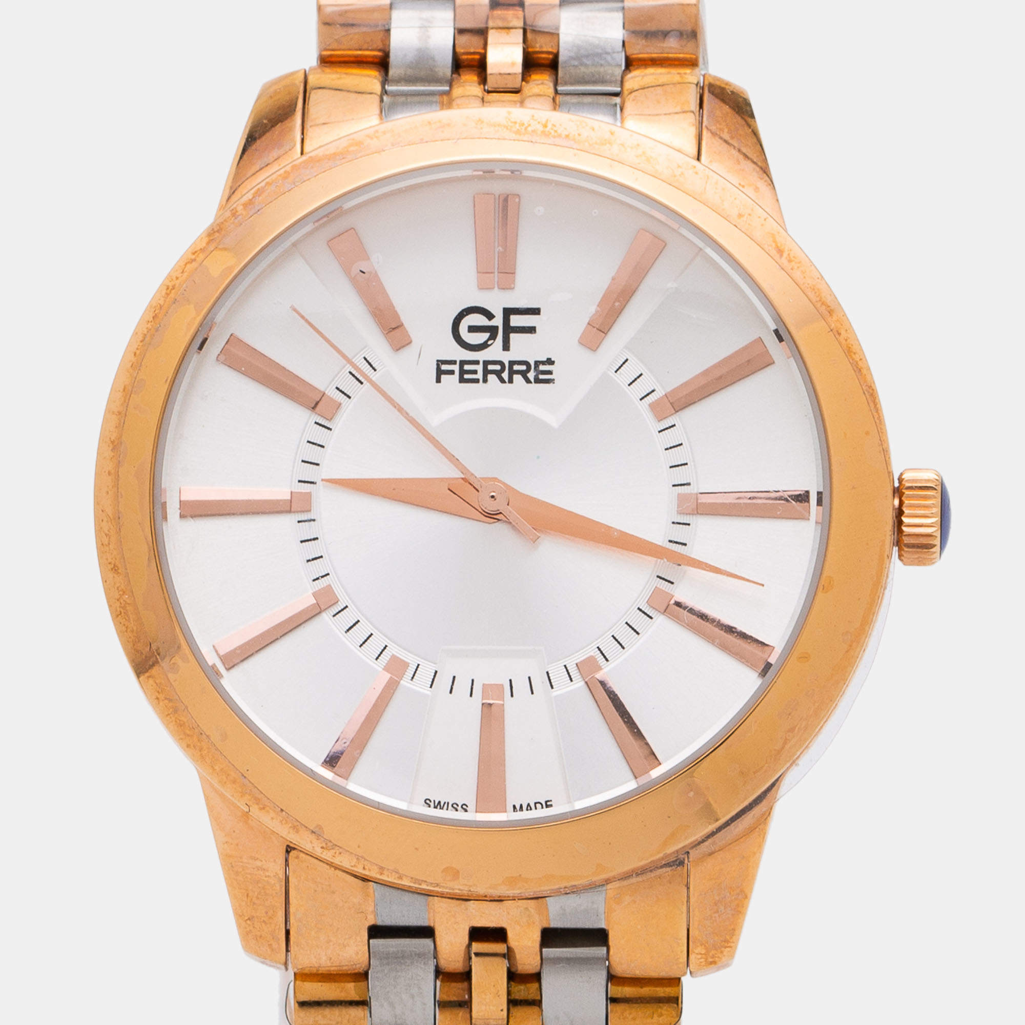 GF Ferre Silver Two Tone Stainless Steel GFRG74391.1B.2 Unisex Wristwatch 40 mm