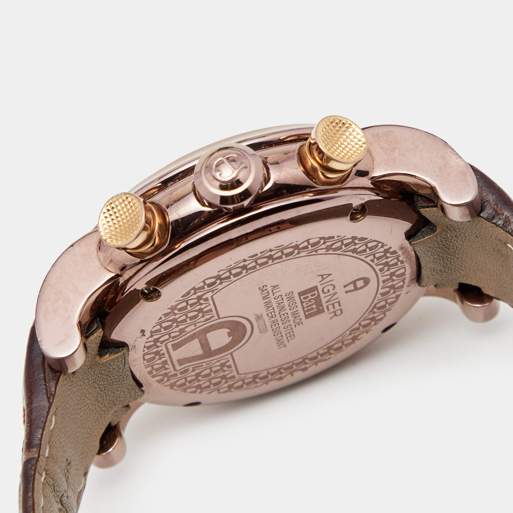 Aigner Brown PVD Coated Stainless Steel Leather Bari A37500 Men's Wristwatch 46 mm