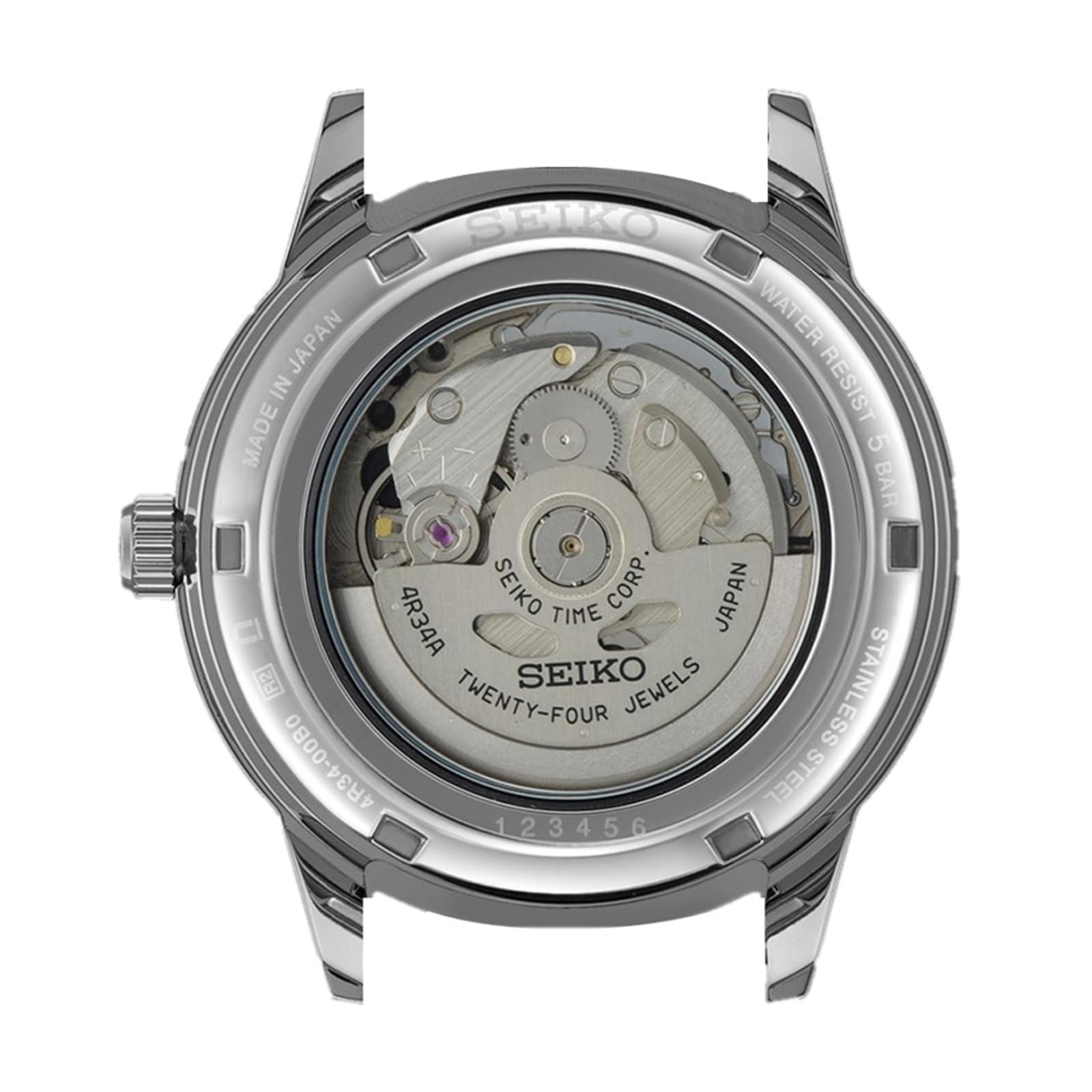 The essence of the Seiko Presage Style 60s collection is vintage style, which continues with the ‘road trip’ theme of this model, inspired by the iconic 1960s cars; their wheels, levers and instruments and colour scheme. Its hairline finishing gives it a machine-like feel, whilst the new GMT dial layout incorporates the details of the original Seiko 1964 crown chronograph.This petrol blue colour design operates on a 4R34 mechanical calibre movement, and has a GMT function, allowing multiple timezones to be tracked at the same time.Seiko Presage: Timeless looks, precisely Japanese mechanical timekeeping.Minimalistic watch designs with a distinctly Japanese aesthetic.