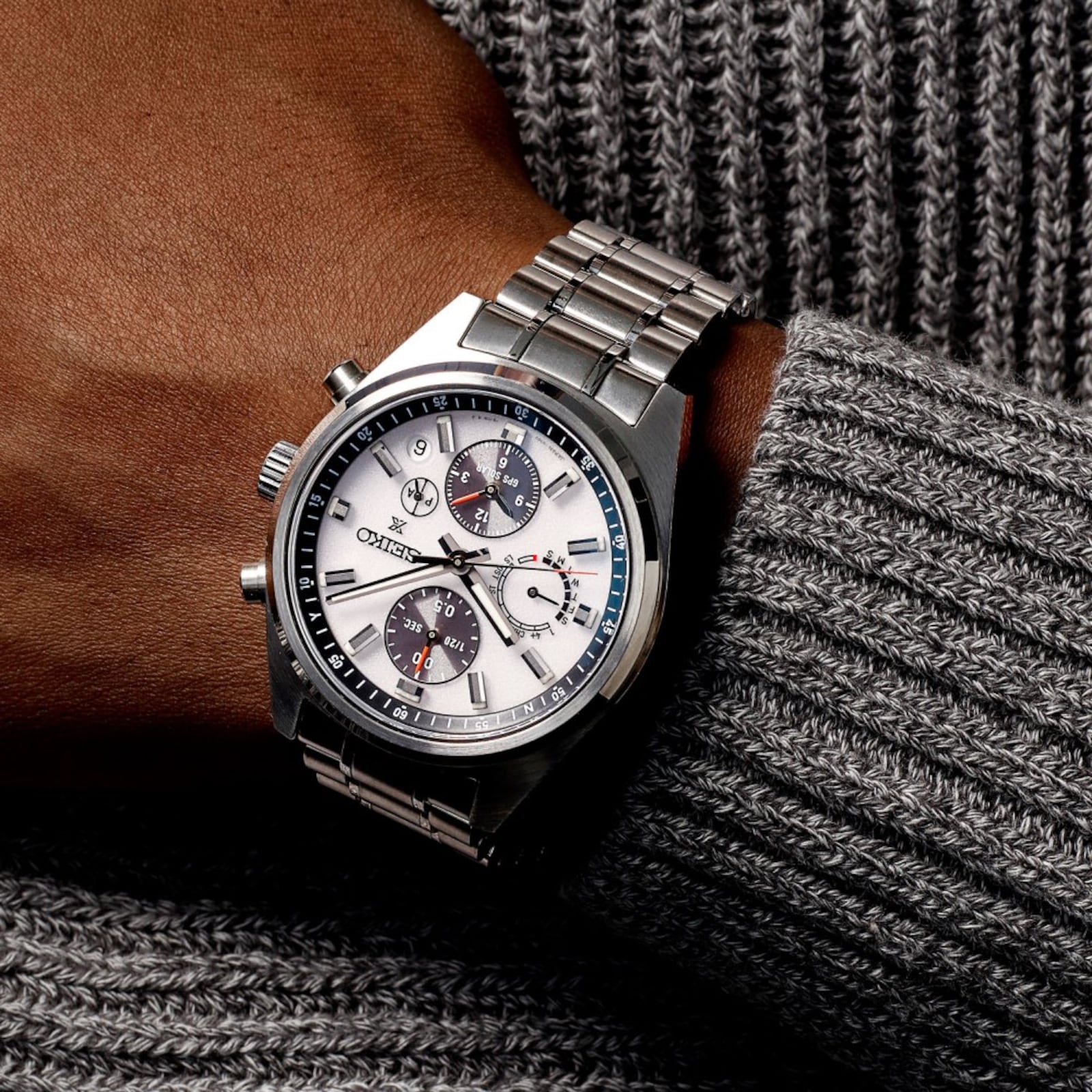 Prospex GPS Solar Chronograph Speedtimer in White Silver Introducing the first GPS Solar Chronograph within the Prospex collection – the most evolved next-generation chronograph in Seiko history. With a heritage of many world-first achievements in chronograph development, the GPS Solar Speedtimer uses the latest developments in watchmaking to advance the Speedtimer legacy. Taking inspiration from the renowned 1972 monochrome 'Panda' chronograph design, this watch features the same chronograph style as the original, as well as the iconic orange accents. Under a dual-curved sapphire crystal glass is a dual-time display, high-speed timezone adjustment feature and a time transfer function. Around the perimeter of the white-silver dial, this GPS Solar timepiece enhances the chronograph functionality with the addition of a chronograph scale on the inner bezel. Legibility of the stopwatch function is enhanced by designing the UTC time zone markings on the side of the bezel. The watch is powered by the in-house 5X83 Solar GPS calibre, with the capability to measure elapsed time through its chronograph feature which can measure elapsed time up to 1/20th of a second. It is accurate to ± 15 seconds per month whilst having a power reserve of 6 months at full charge and can be charged by any light source - either natural sunlight or artificial light - for convenience. Prospex is a combination of the words 'Professional' and 'Specifications.' Seiko Prospex timepieces are designed to be practical, reliable and durable; to meet the high standards required in extreme environments for sports lovers and adventure seekers alike.