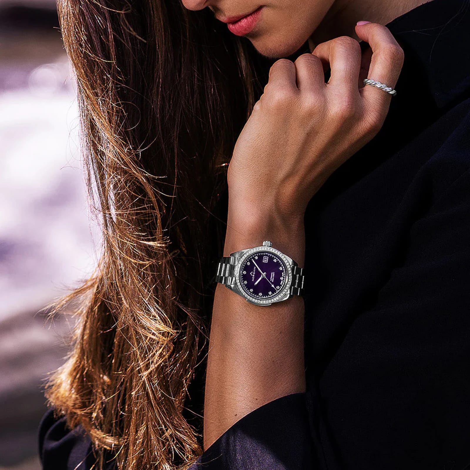 The Adventure line embodies the thrill of exploring and conquering nature’s playground – the trails, the summits and the tides. The Adventure Sport 37mm Purple Gradient picks up on a much-loved collection, adding a purple gradient dial with a sparkling sunray finish, a bezel set with 60 diamonds and 11 diamond-set hour markers to give the watch some extra day-to-night razzle.
