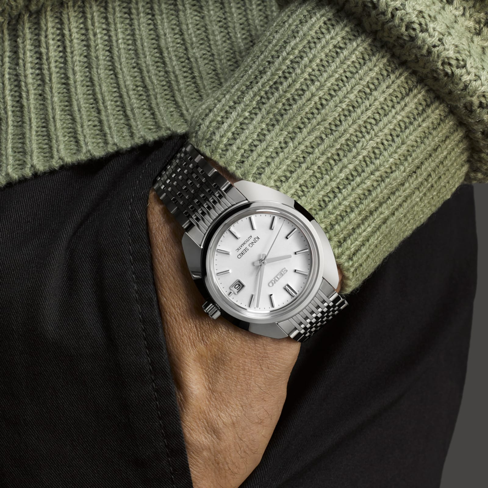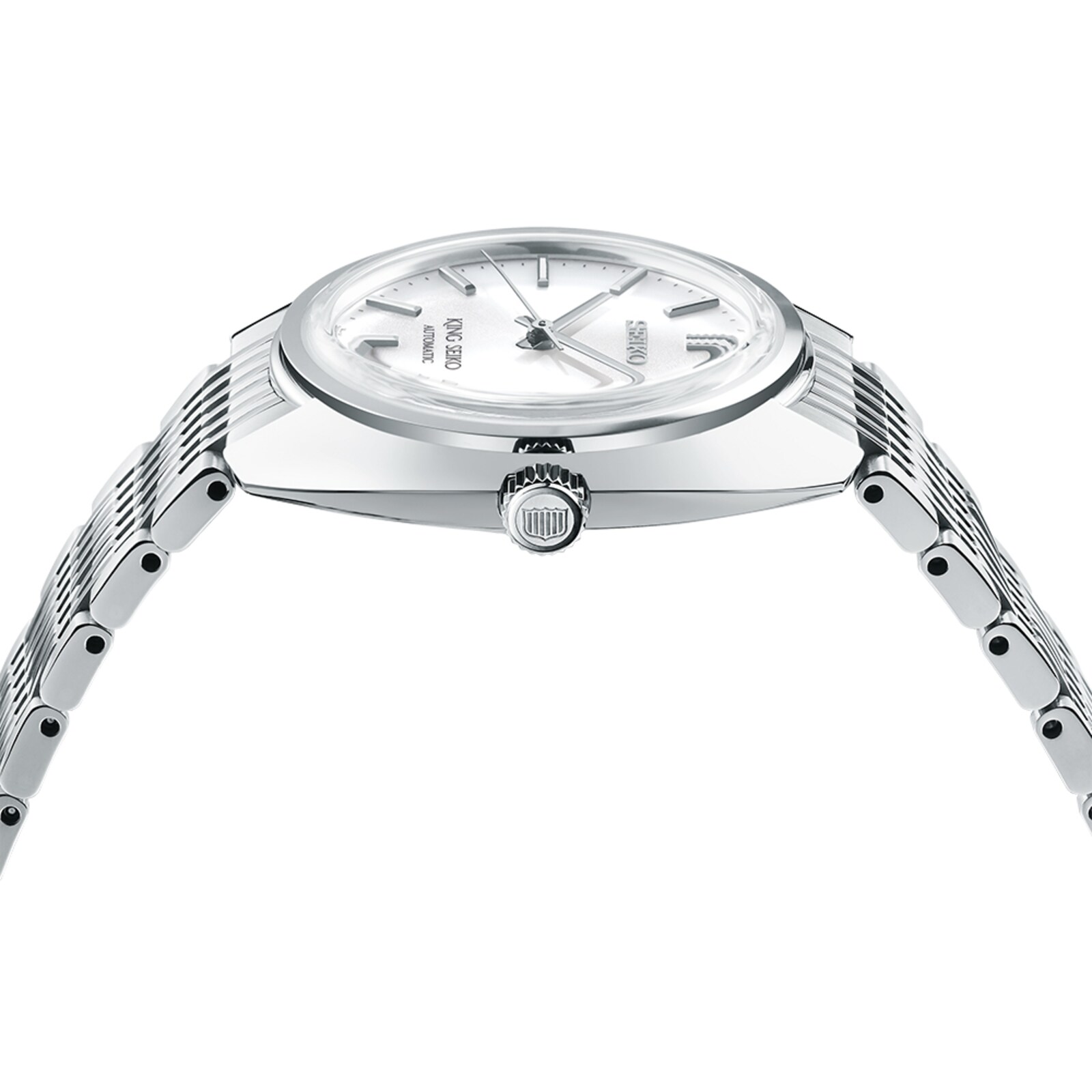 King Seiko 'Metropolis Silver' 6L 1969 Re-Interpretation In 1969, the 45KS launched and was entered into international watchmaking competitions for accuracy. It became Seiko's, and Japan's, first ever certified ‘Chronometre,’ as an exceptionally accurate mechanical timepiece. Inspired by this landmark in Seiko history, King Seiko introduce the ‘Metropolis Silver’ re-interpretation of the 4502-8020 original. The redux echoes the original silhouette with its curved case shape, date feature and 12 o'clock index cut like an arrow feather. It features a narrow link bracelet in true Seiko Sixties style of the time. This timepiece is crafted to be only 9.9mm in depth, being powered by Seiko's slimmest automatic in-house calibre. With a bidirectional and semi-instantaneous winding mechanism, this 6L35 timepiece is highly practical, and accurate to +15/-10 seconds per day, with a 45-hour power reserve. Long live the new King Seiko: modernised elite watchmaking, yet its stately, dignified and majestically classic looks remain.