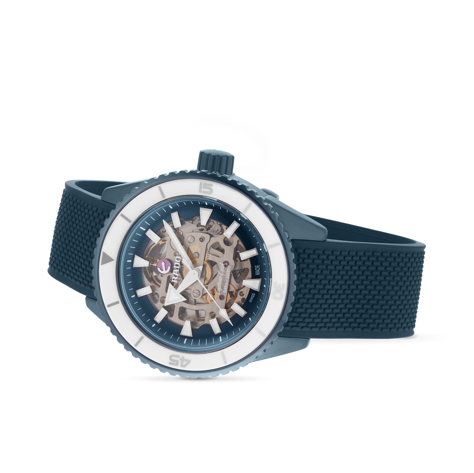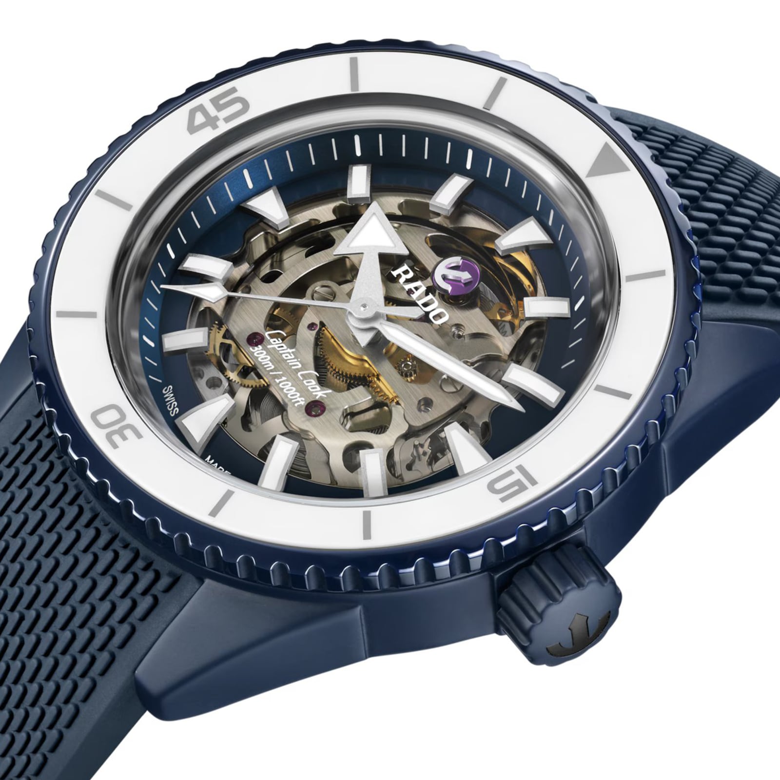Rado’s new limited edition watch launched in partnership with the England and Wales Cricket Board showcases its innovative R808 movement, which is equipped with an anti-magnetic and highly reliable NivachronTM hairspring, that has been fully tested in five positions and provides up to 80 hours of power reserve. The watch features a circular brushed navy blue coloured PVD-coated titanium case back fitted with a sapphire crystal. A special engraving on the case back includes the words “LIMITED EDITION, No. XXX/150”, a confirmation of the series size. On the sapphire crystal case back are the specially metallised words, “Official Timing Partner”, along with the ECB logo. The matt navy blue-high-tech ceramic monobloc case is framed by a white high-tech ceramic bezel insert which matches perfectly to the watch. Inside the rotatable bezel, silver metalized markers and triangle add contrast, next to the box-shaped sapphire crystal with anti-reflective coating on both faces. The dial itself clear and spartan, with hands treated with white Super-LumiNova® to enhance readability in low-light conditions. Thanks to a matching navy blue rubber strap and the high-tech ceramic buckle cover, this new Captain Cook shows its sporty side.