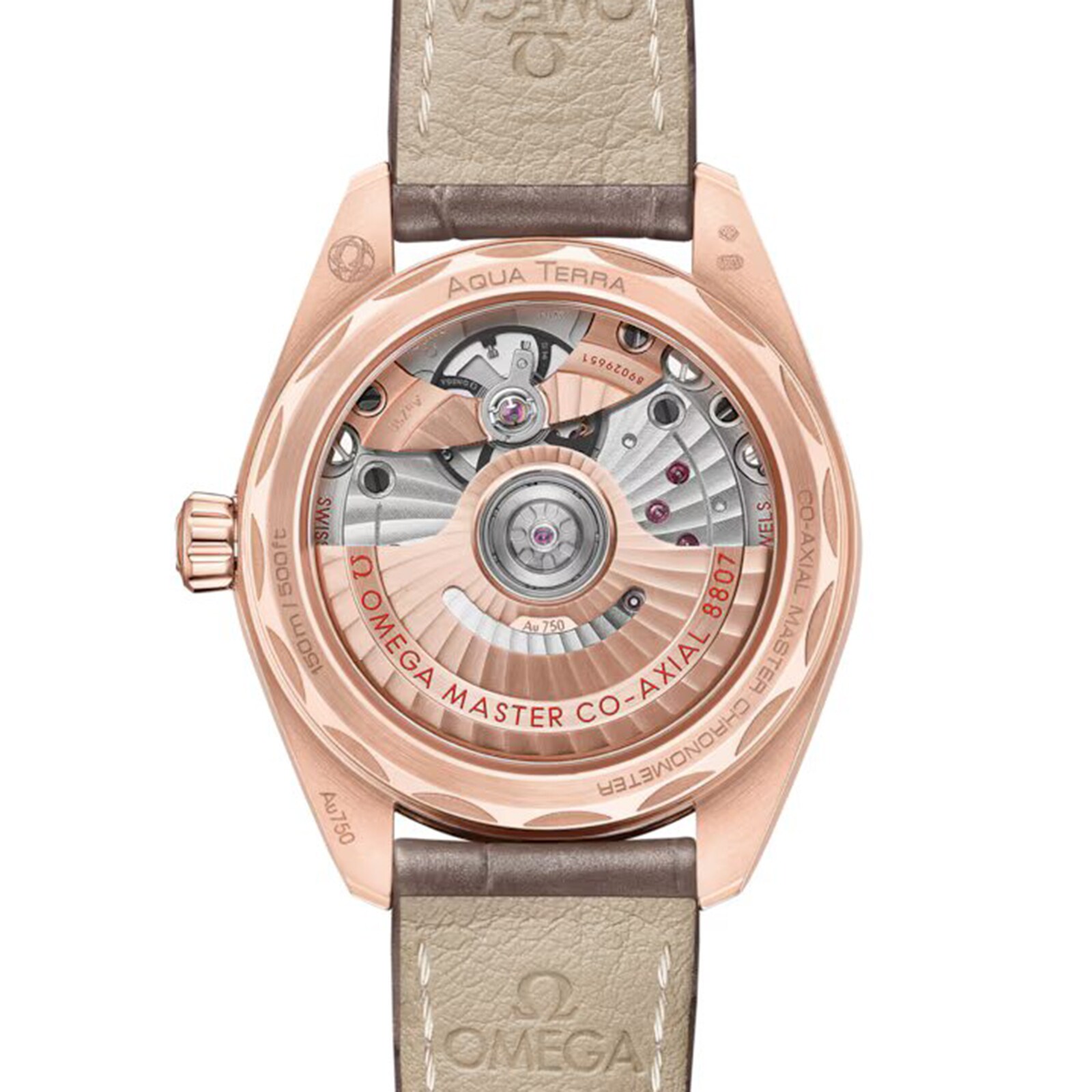 This is a new and unworn watch Crafted with the most incredible selection of precious materials, this extraordinary Seamaster Aqua Terra is a jewellery watch that defines beauty. The 34 mm case, with its diamond-set bezel, has been created from 18K Sedna™ gold. This same gold is also used for the watch hands. The radiant dial is fully paved with a snow setting of 498 diamonds, while the indexes at each hour include 12 marquise-cut diamonds. The watch is presented on a taupe-brown leather strap and is driven by the Master Chronometer Calibre 8807, for the industry highest standard of precision, performance and magnetic resistance.