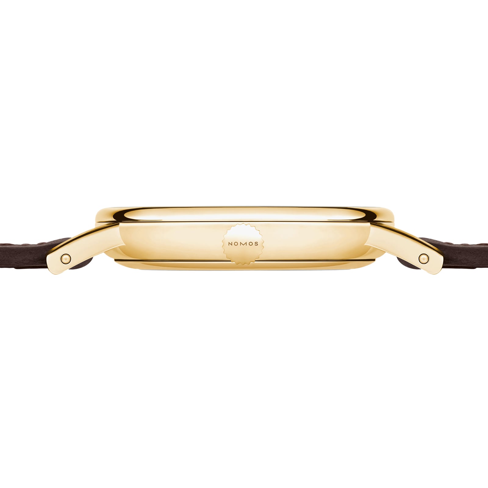 The Ludwig Gold 33mm embodies the rich heritage and exceptional crafstmanship that NOMOS GLASHÜTTE is renowned for. An alluring timepiece that is well-suited to any wrist, this model pairs sleek and simple aesthetics with touches of luxury that make it stand out as a contemporary masterpiece. This timepiece features a clean, minimalistic dial finished in white silver-plating, paired with slender gold hands and alternating large black Roman numeral and index hour markers creating the ultimate contrast. The crisp dial is complimented by an elegant 18K yellow gold case with a recessed golden bezel. Slightly curved lugs provide optimal comfort and style. Powered by the brand’s original in-house movement, this timepiece is water resistant up to 30 bar (300 metres) and pays tribute to over 175 years of Glashütte watchmaking tradition.