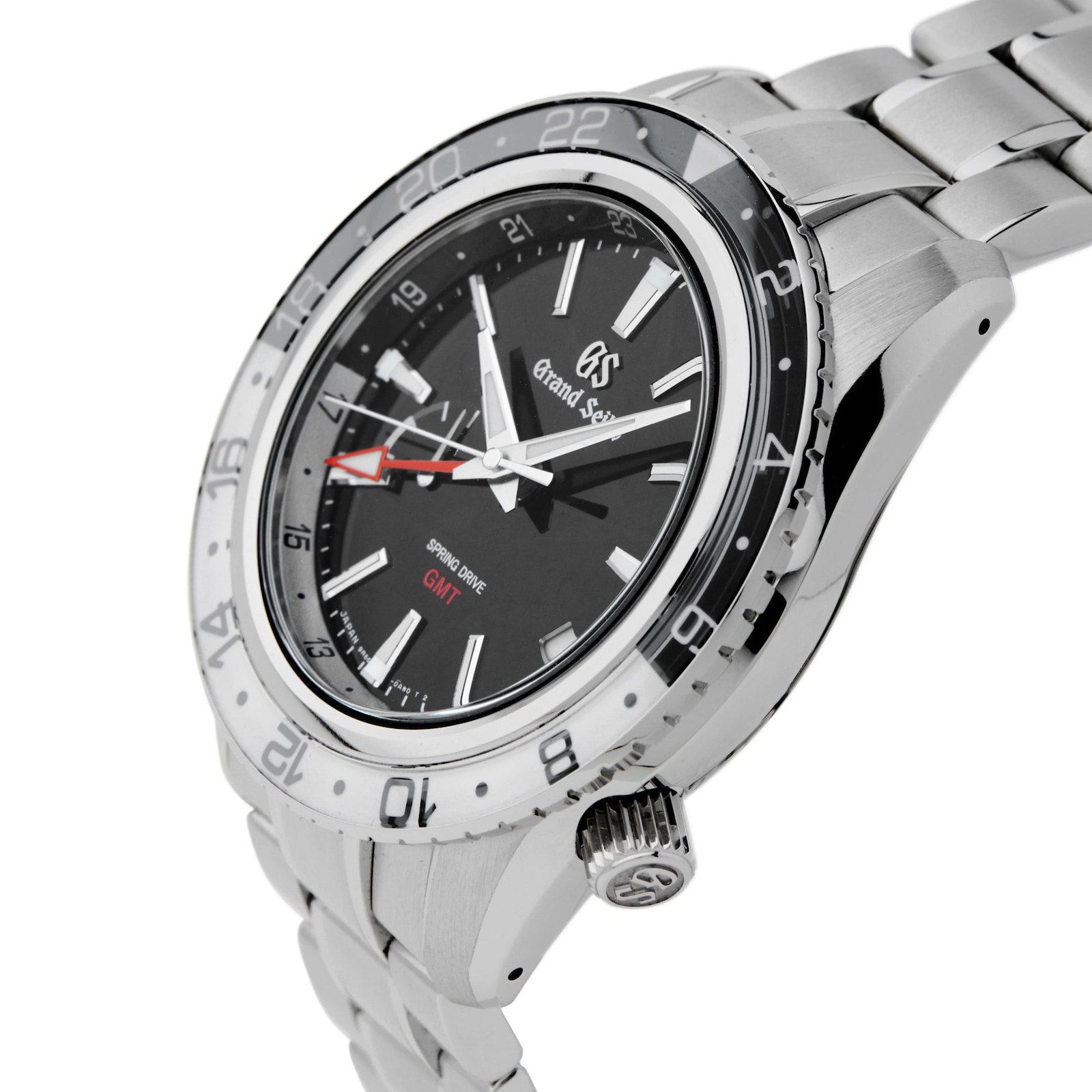 This Pre-Owned Grand Seiko Spring Drive GMT features a 44mm Stainless Steel case, showcasing a Black dial and sapphire crystal glass. Powered by an Automatic movement, this impressive watch also showcases a Stainless steel bracelet finished with a Folding Clasp for added security. Condition - Some signs of previous wear may be present on the watch and box. Important Information This is an Image of the Actual Watch. Papers describe the original manufacturer issued warranty documentation for the watch. Any additional certificates (including, but not limited to, COSC or diamond certificates), any instruction manuals or additional booklets, if included, will be listed separately. Any stickers shown on the watch is for its protection only. We are unable to guarantee that the box is original and of the correct period.