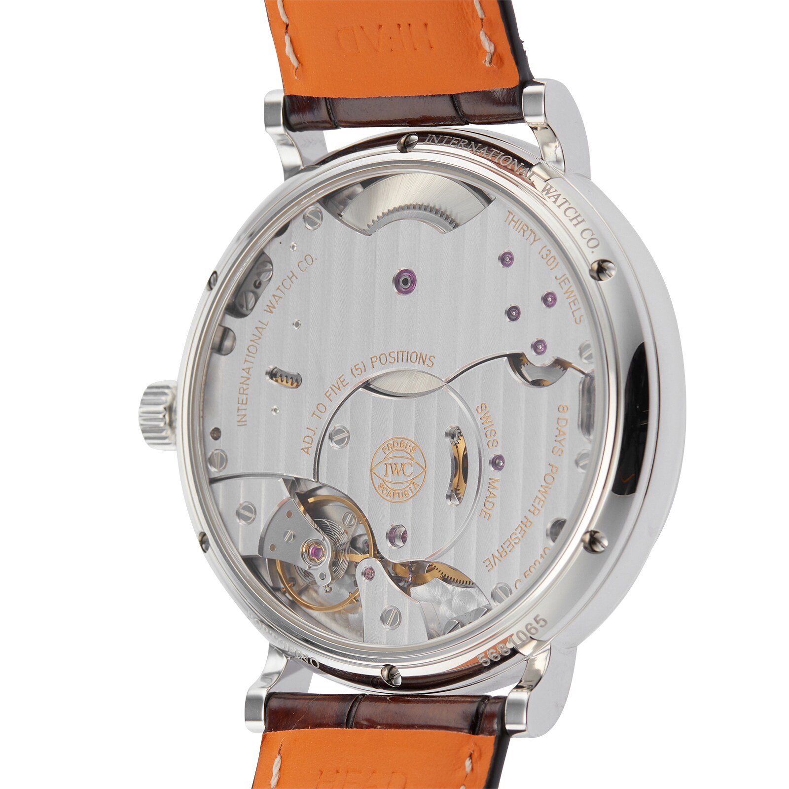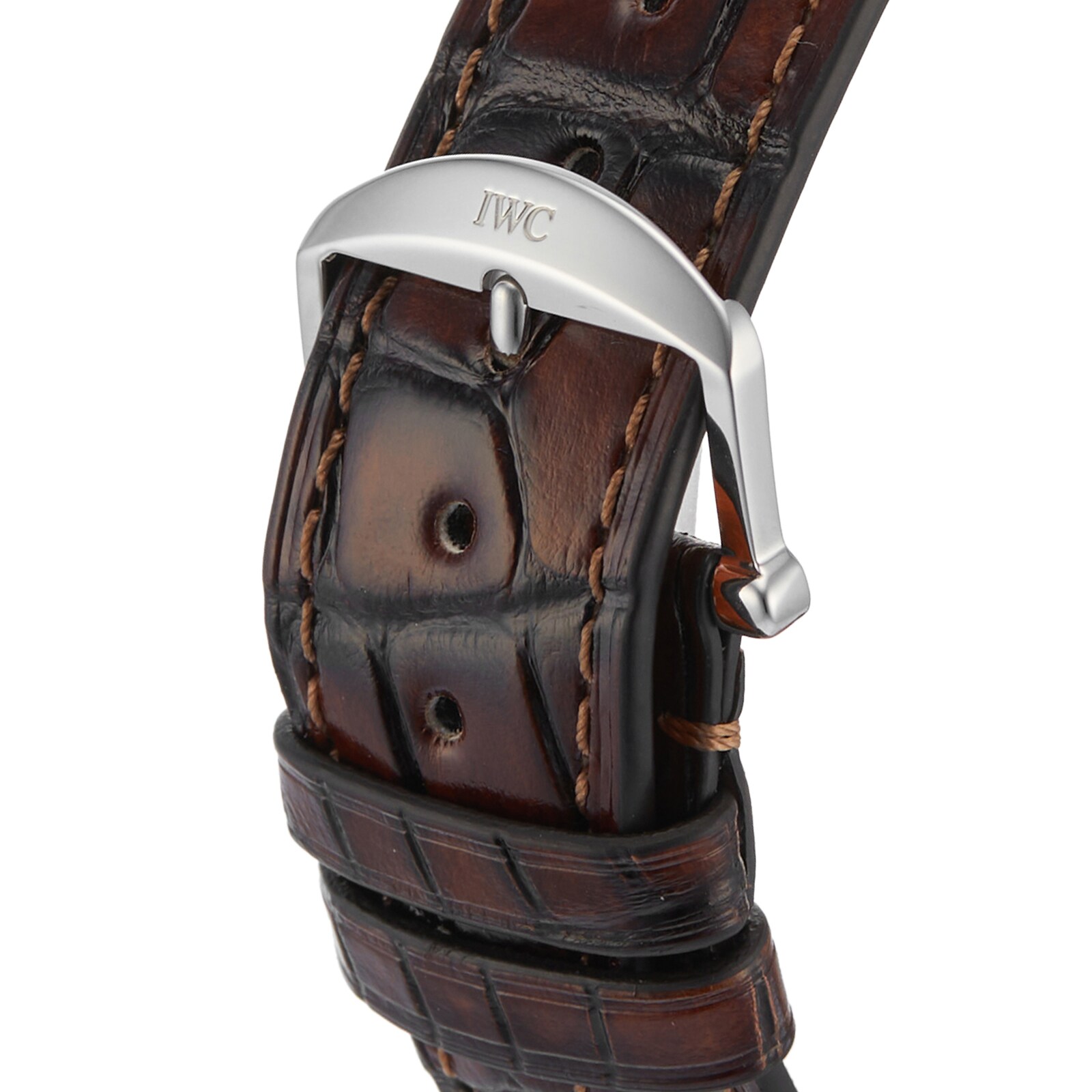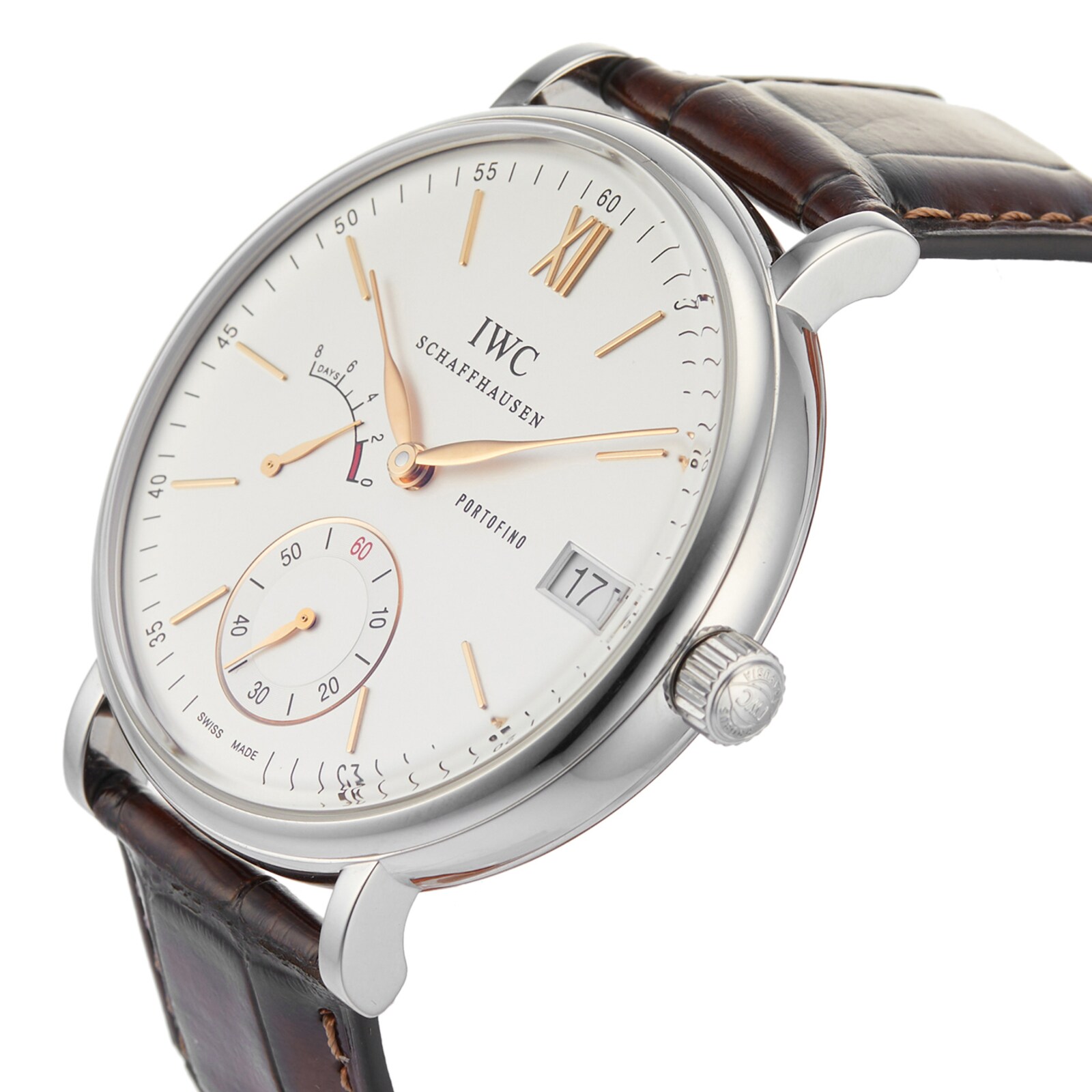This IWC Portofino Hand-Wound Eight Days IW510103 features a 45mm stainless steel case, showcasing a silver dial and sapphire crystal glass. Powered by a manual winding movement, this impressive watch also showcases a leather strap finished with a buckle clasp for added security. This watch is also water resistant to 30 metres. Condition - Some signs of previous wear may be present on the watch and box Important Information This is an Image of the Actual Watch. Papers describe the original manufacturer issued warranty documentation for the watch. Any additional certificates (including, but not limited to, COSC or diamond certificates), any instruction manuals or additional booklets, if included, will be listed separately. Any stickers shown on the watch is for its protection only. We are unable to guarantee that the box is original and of the correct period.