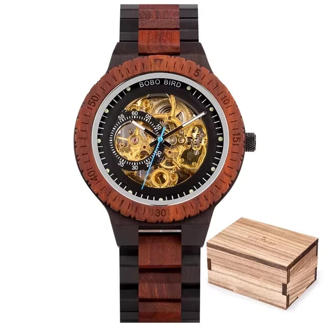 BOBO BIRD Wood Mechanical Watch Men Luxury Exposed Skeleton Watch Unique Gift