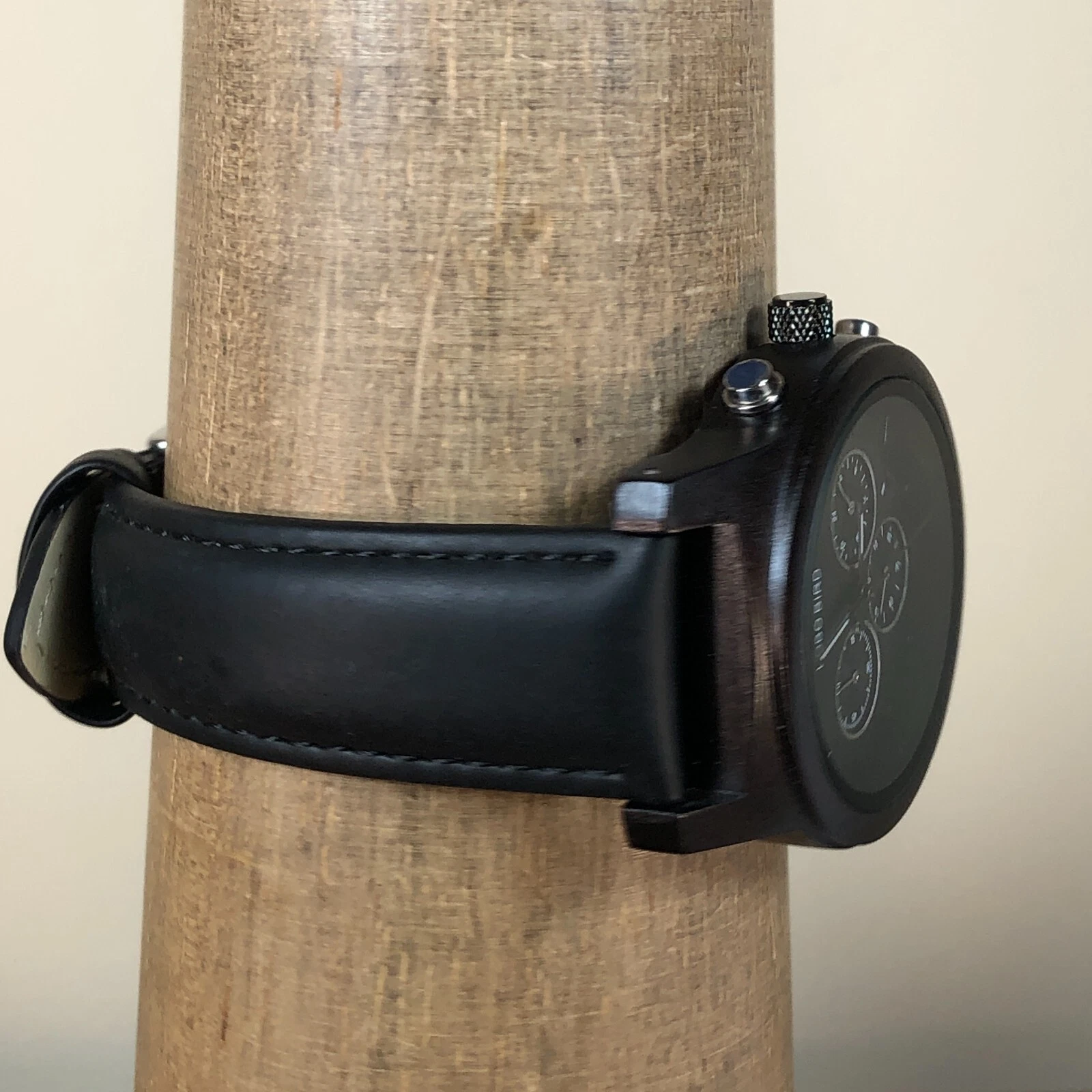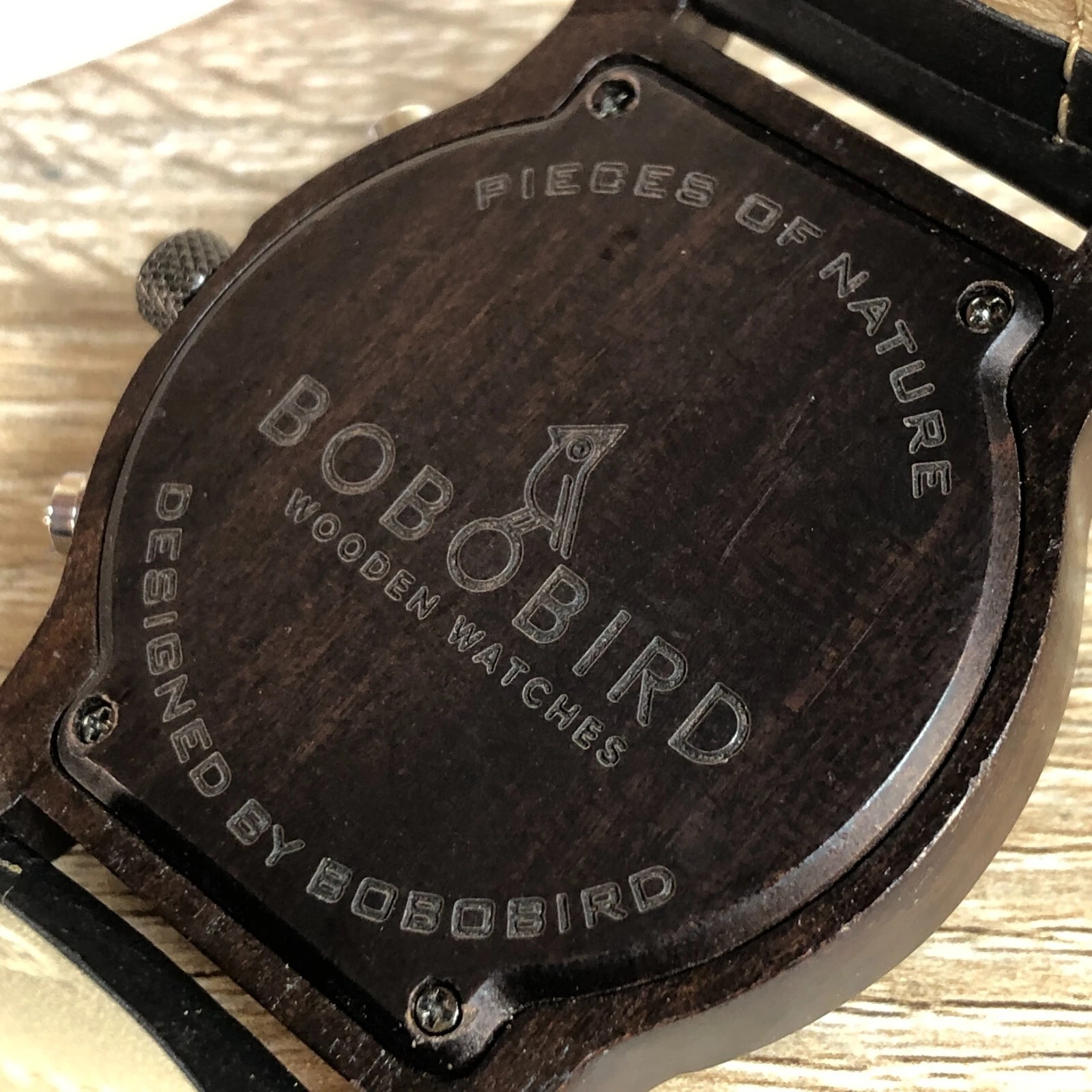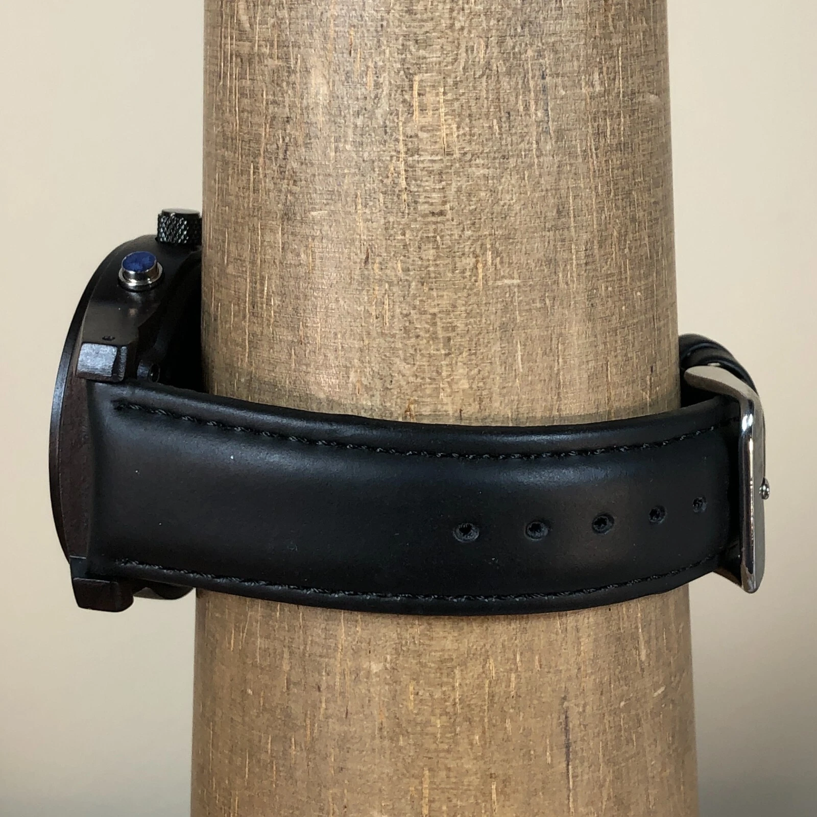 BOBO BIRD Men Black Dial Chronograph Black Leather Strap Quartz Wooden Watch 8