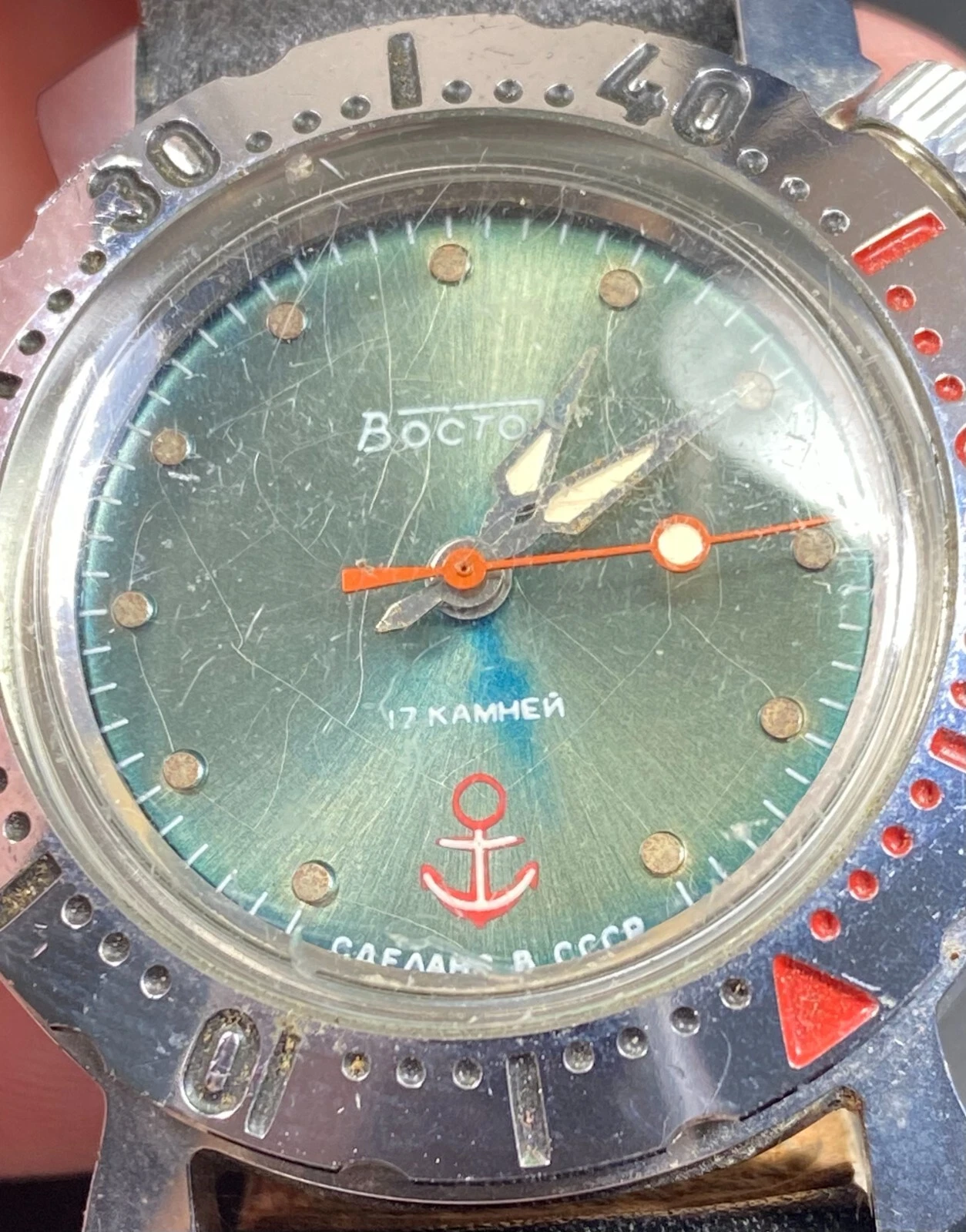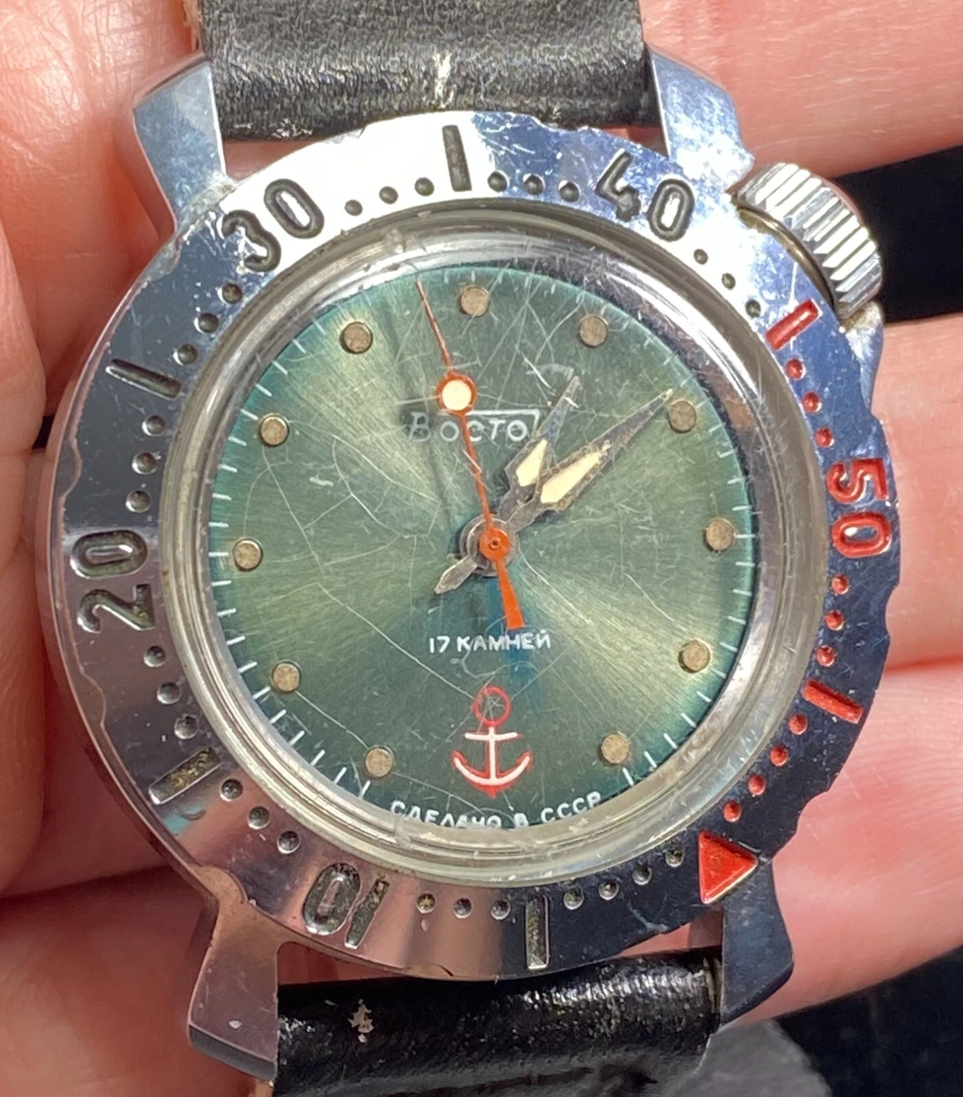 BOCTOK RUSSIAN 17 KAMHEA GREEN MILITARY MANUAL WIND WRISTWATCH CCCP *RUNNING*