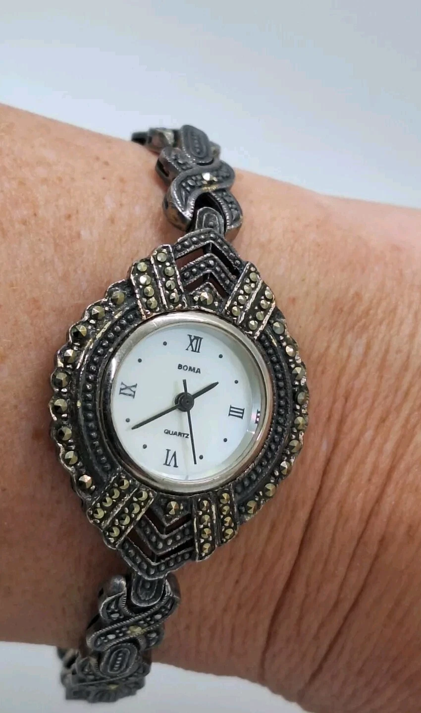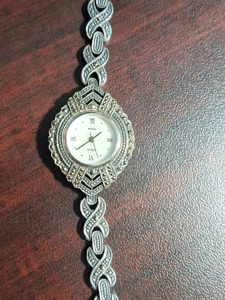 Beautiful Boma 925 Sterling Silver Quartz Ladies Wristwatch Watch Needs Battery