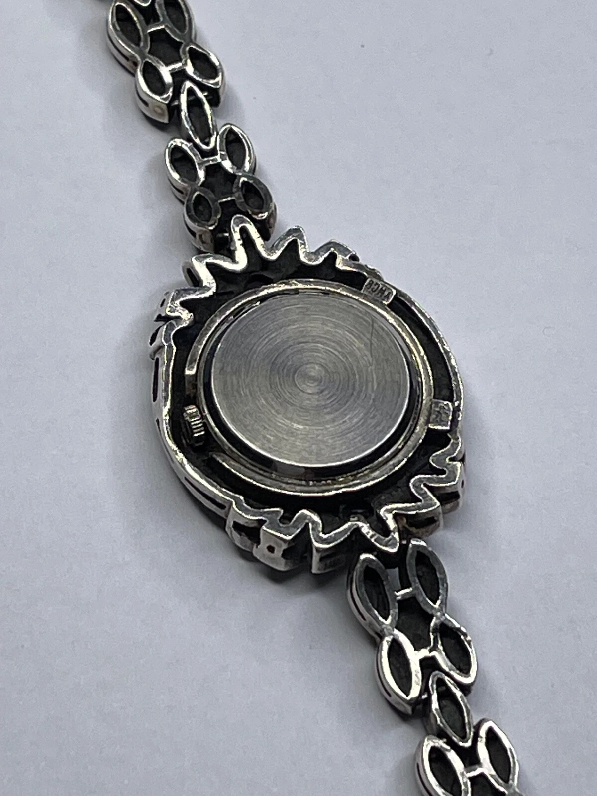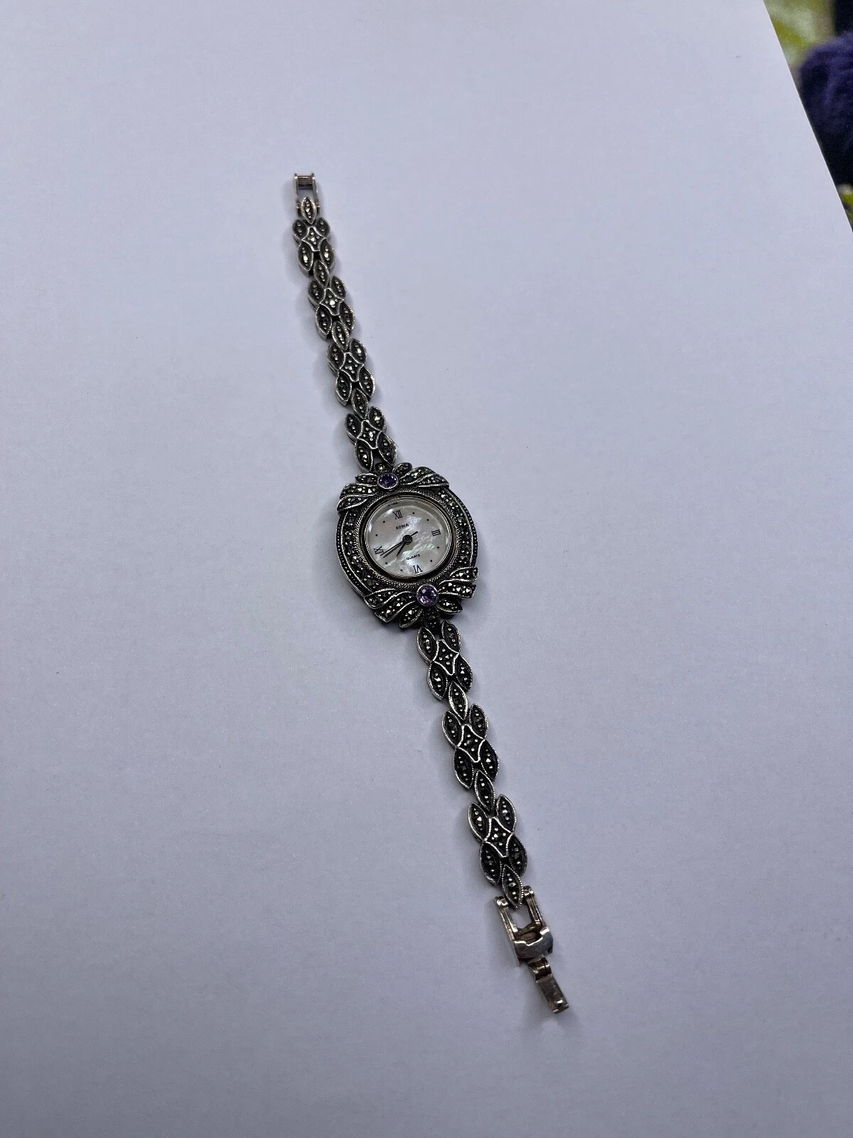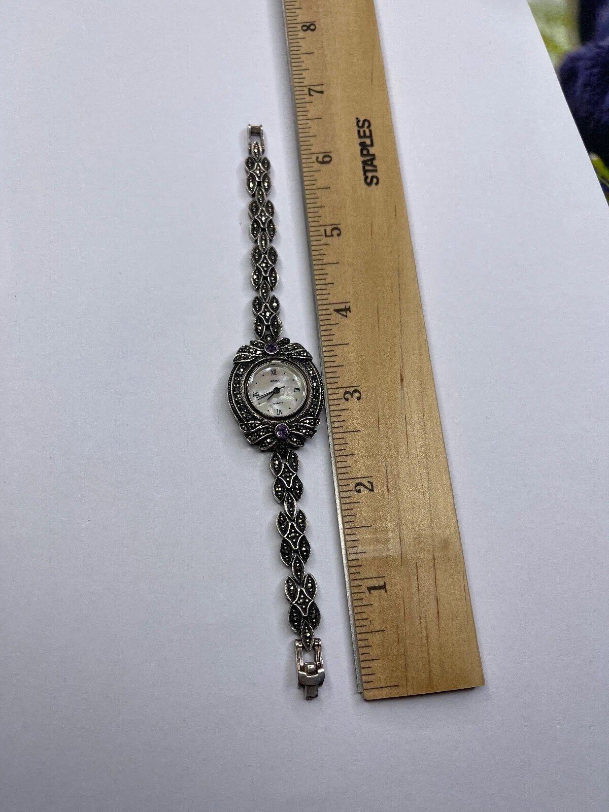 BOMA Sterling Silver Marcasite & Amethyst Ladies Quartz Watch (27.9 grams)