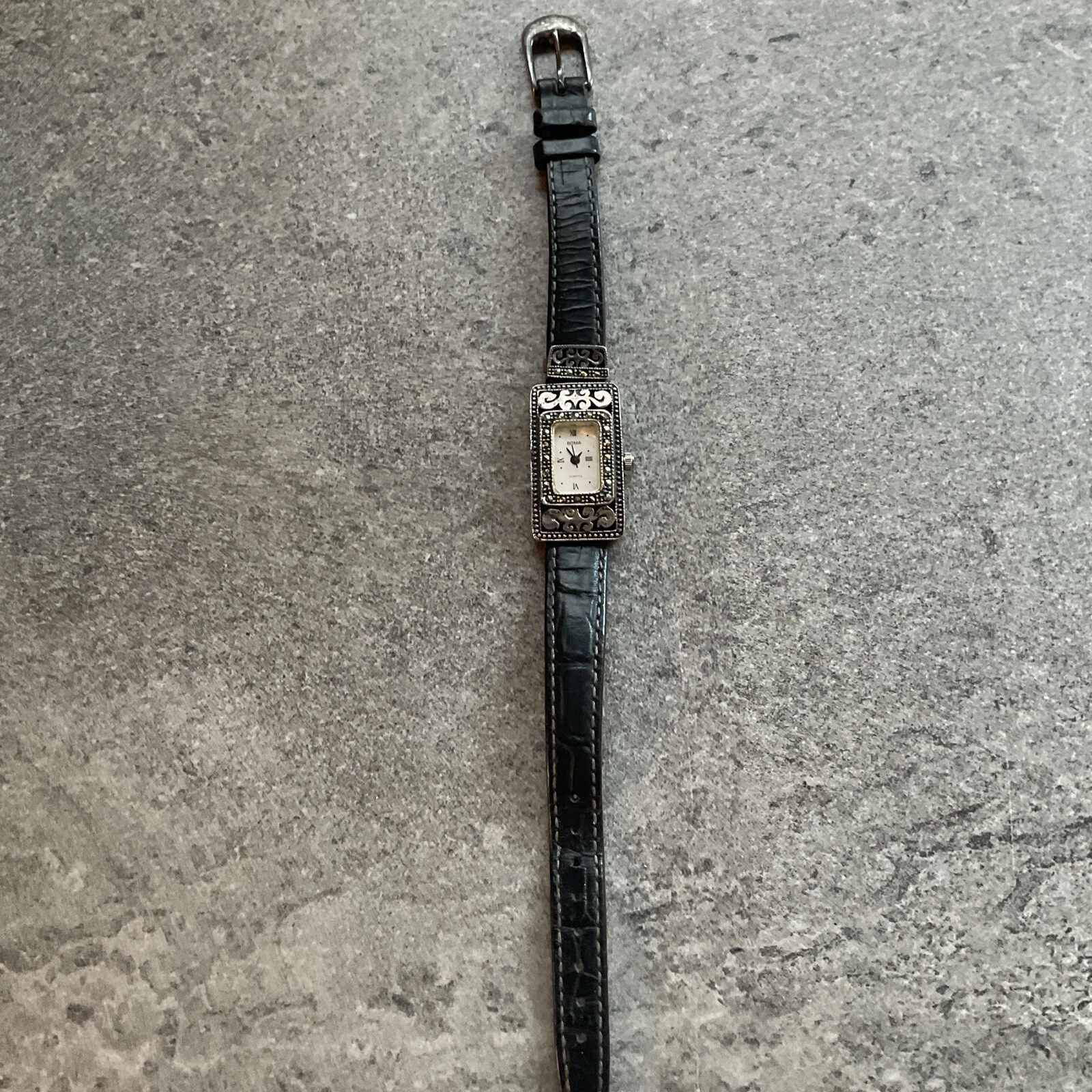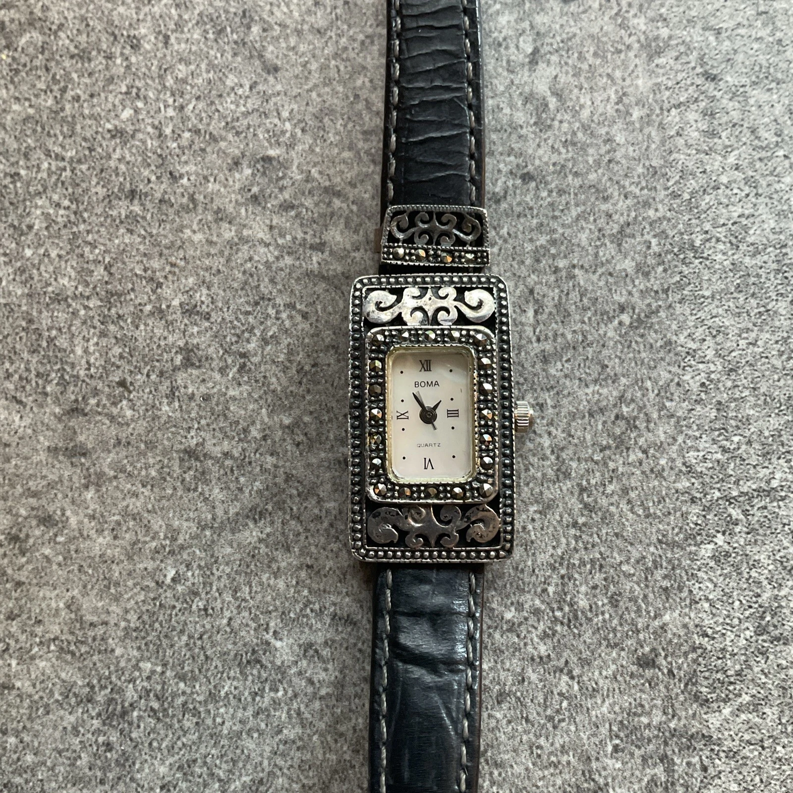 Boma Womens 925 Sterling Silver Marcasite Watch Mother of Pearl Dial Art deco P