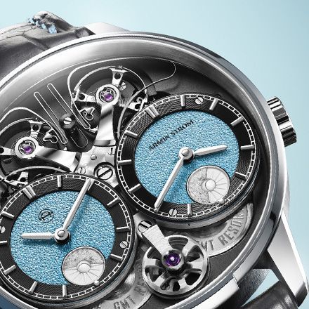 Ограниченная серия (Limited Edition) 25 шт. Второй часовой пояс. Индикатор дня и ночи. Калибр ARF22. Запас хода до 42 часов. Циферблат серо-голубой. Задняя крышка с сапфировым стеклом. В комплект входят два ремешка из кожи аллигатора.