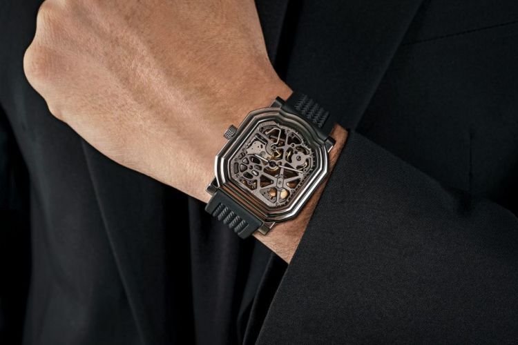 Скелетон. Калибр GCA 5482. Запас хода до 50 часов. Циферблат темный серый. Задняя крышка из сапфирового стекла.