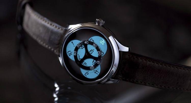Ограниченная серия (Limited Edition) 100 шт. Скелетон. Калибр HMC 806. Запас хода до 72 часов. Черный циферблат с ажурными синими часовыми дисками и прозрачным кольцом для отображения минут. Задняя крышка прозрачная.