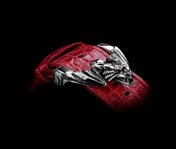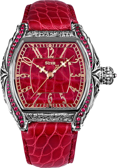 Ограниченная серия (Limited Edition) 9 шт. 54 рубина круглой огранки на безеле. Калибр ETA 2824. Запас хода до 38 часов. Циферблат из красной кожи аллигатора. Серебряная застежка выполнена вручную.