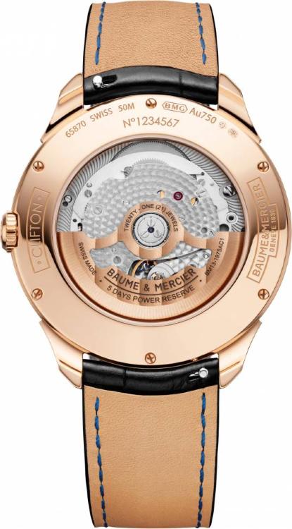 Вечный календарь. Фазы луны. Калибр Baumatic BM13-1975A C2. Запас хода до 120 часов. Циферблат синий. Задняя крышка прозрачная.