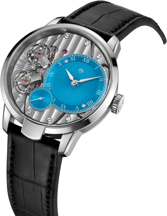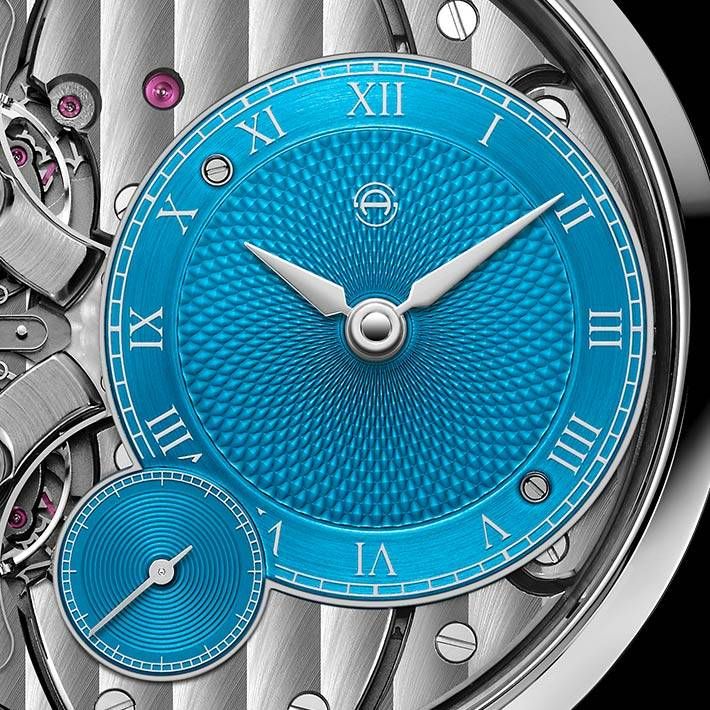 Ограниченная серия (Limited Edition) 3 шт. Скелетон. Калибр ARF16. Запас хода до 48 часов. Циферблат голубой. Задняя крышка прозрачная. В комплект поставки входят два ремешка: голубой из кожи аллигатора и черный резиновый. Механизм Pure Resonance, объединяет две независимые системы регулирования (главные пружины, зубчатые передачи, спусковые механизмы и противовесы), которые стабилизируют друг друга, используя преимущества физического явления резонанса.