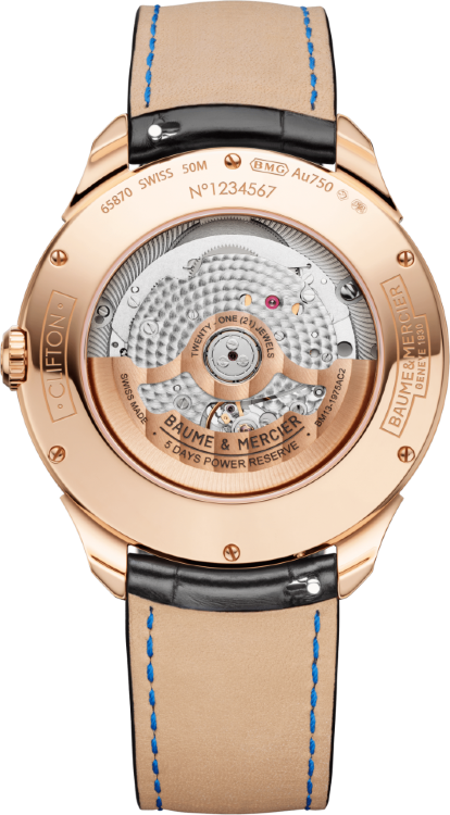 Вечный календарь. Фазы луны. Калибр Baumatic BM13-1975A C2. Запас хода до 120 часов. Циферблат белый. Задняя крышка прозрачная.