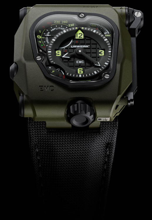 Ограниченная серия (Limited Edition) 55 шт. Калибр UR-EMC2. Запас хода до 80 часов. Циферблат черный.