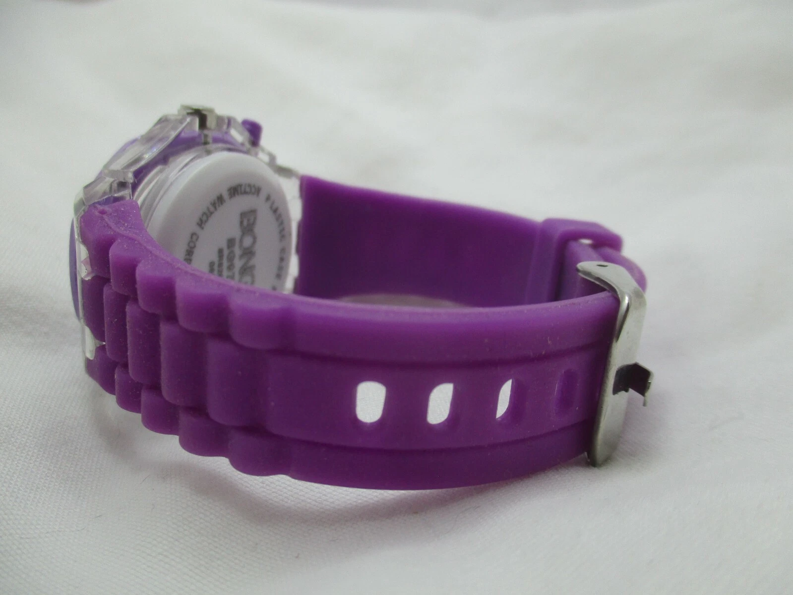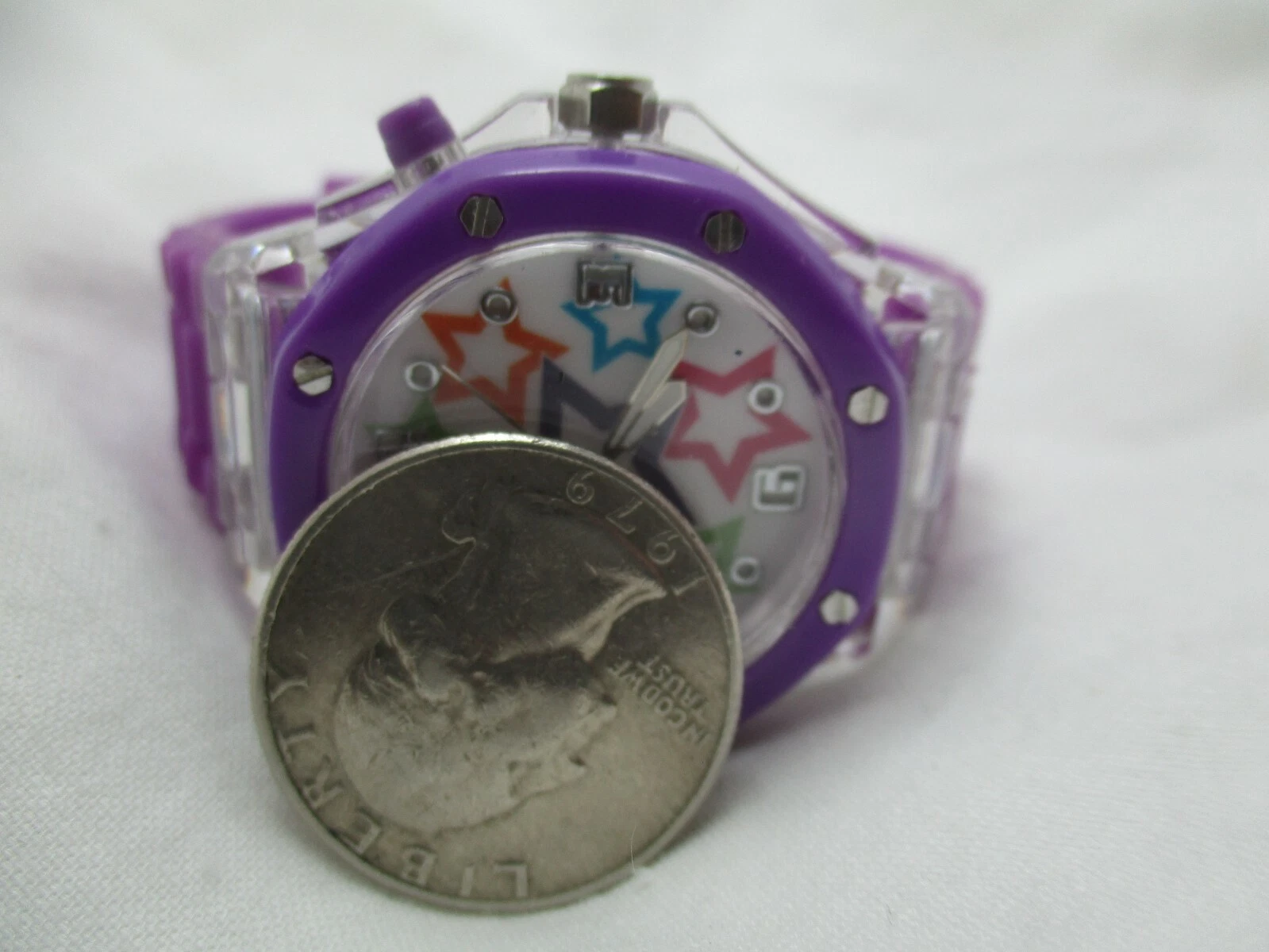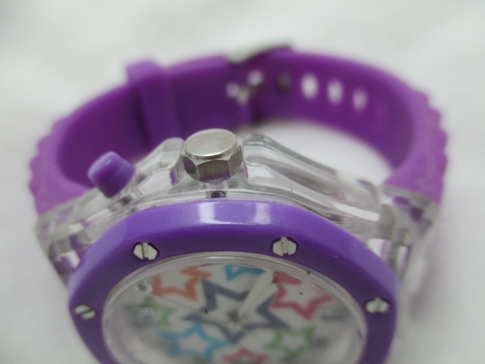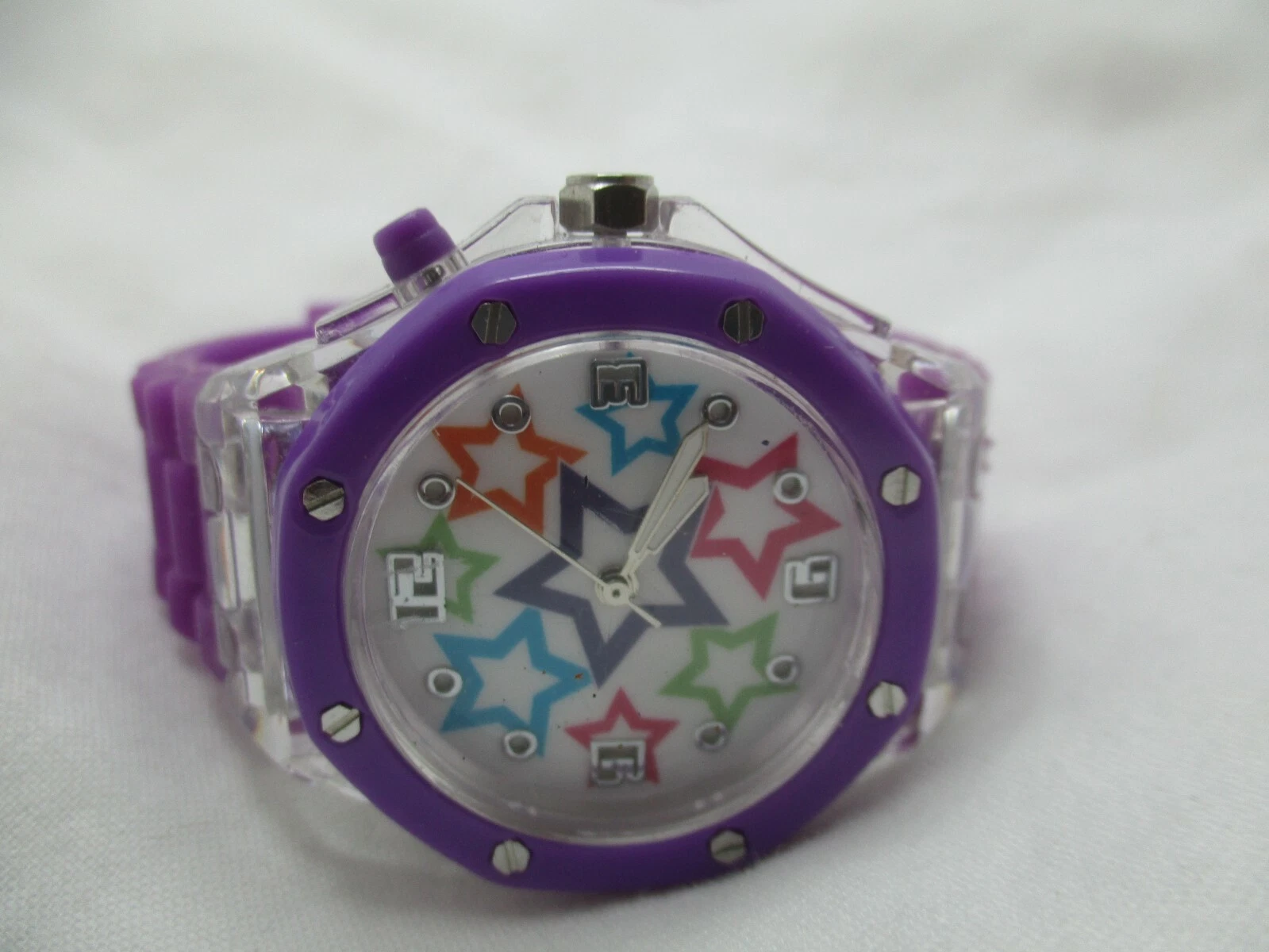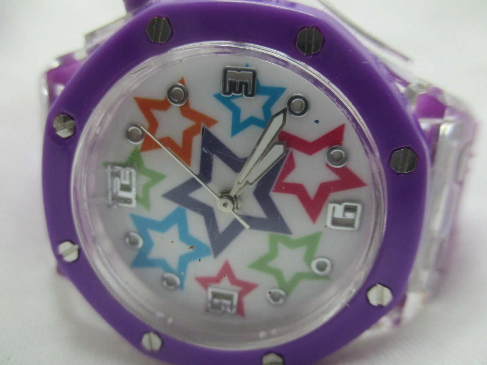 Bongo Wristwatch Star Colorful Face Silver Tone Purple Buckle Band