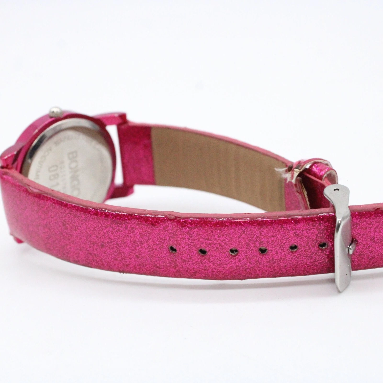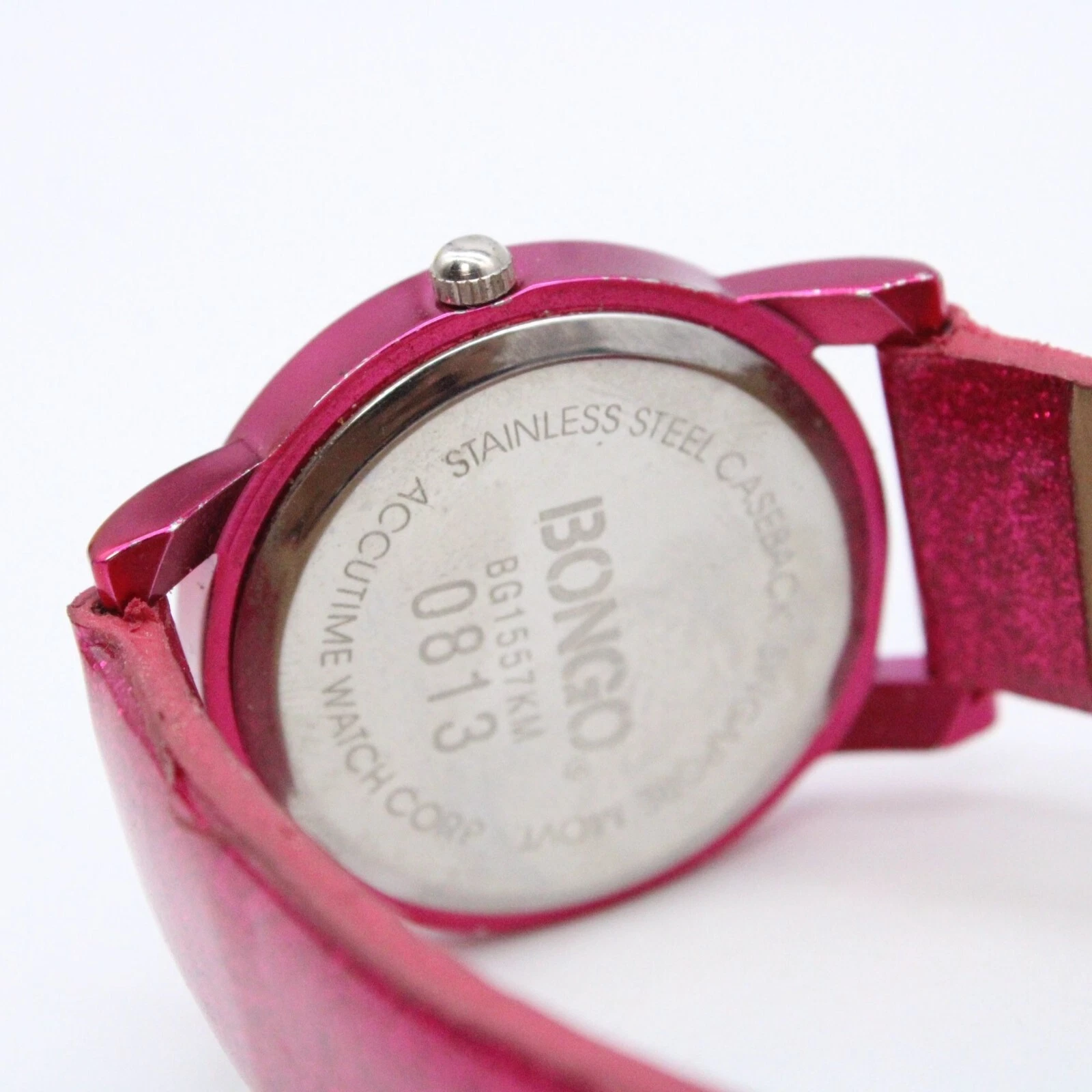 Bongo Watch Womens Pink Tone Stainless Steel Classic Pink Rubber Band 0813