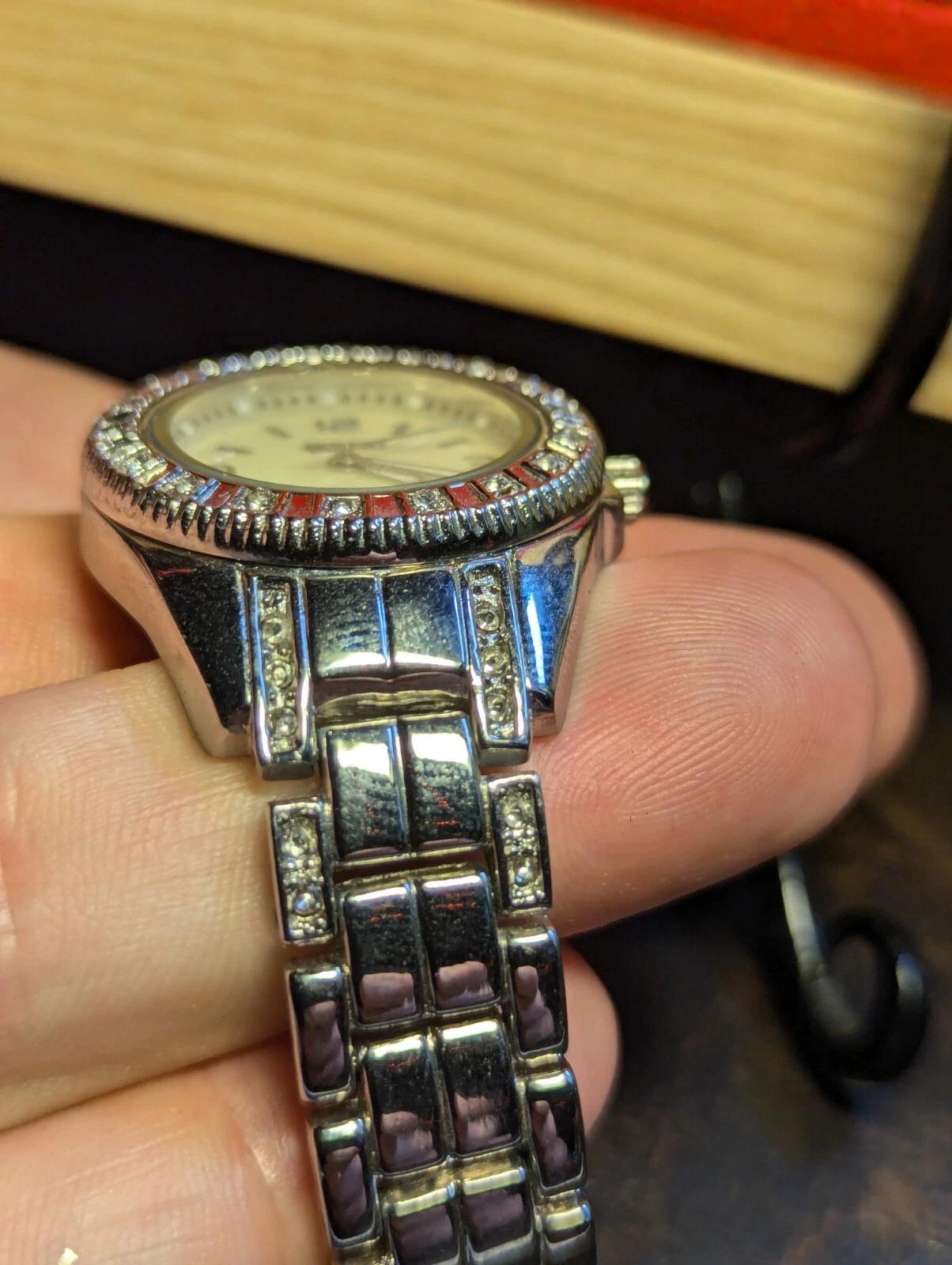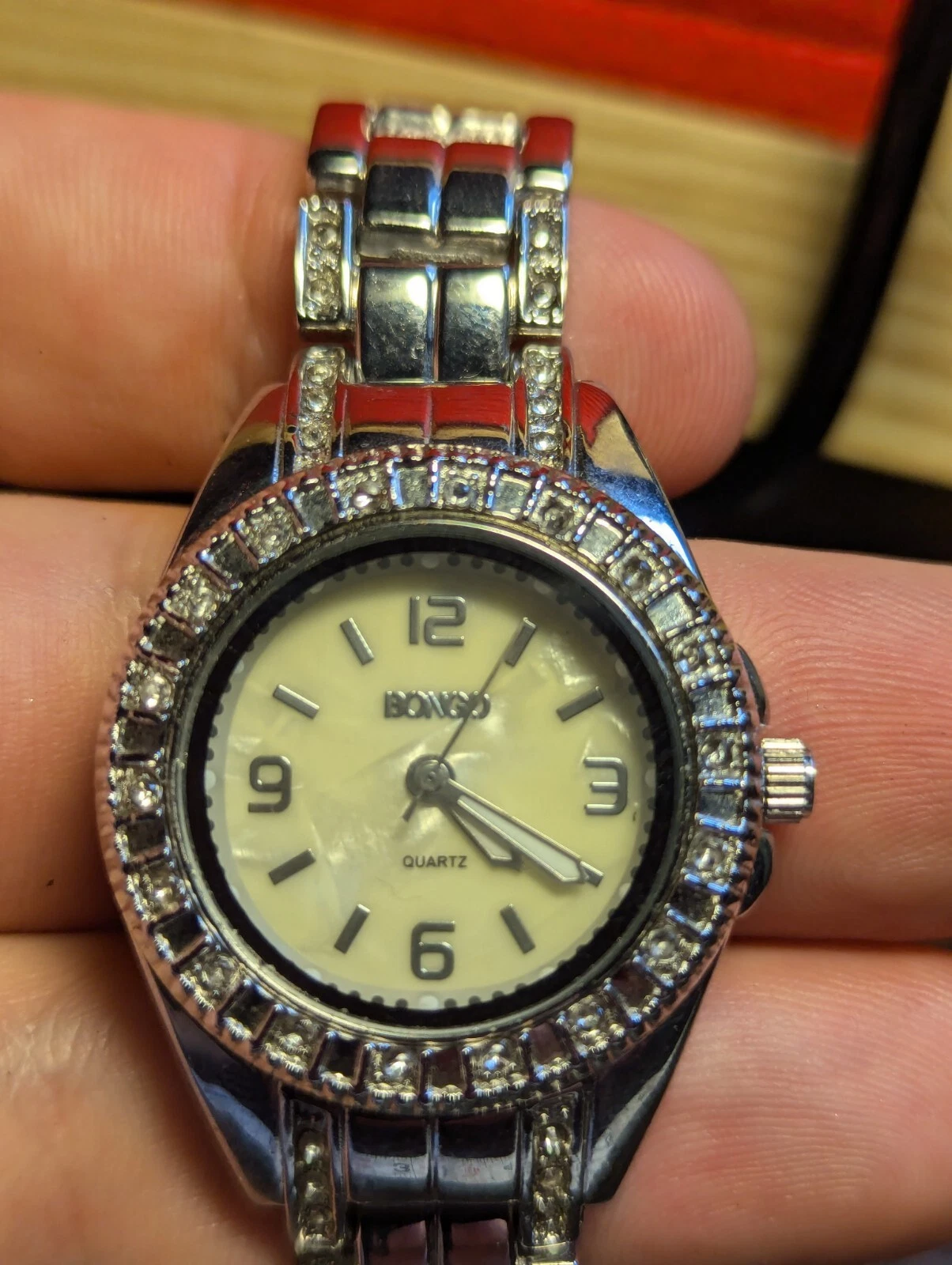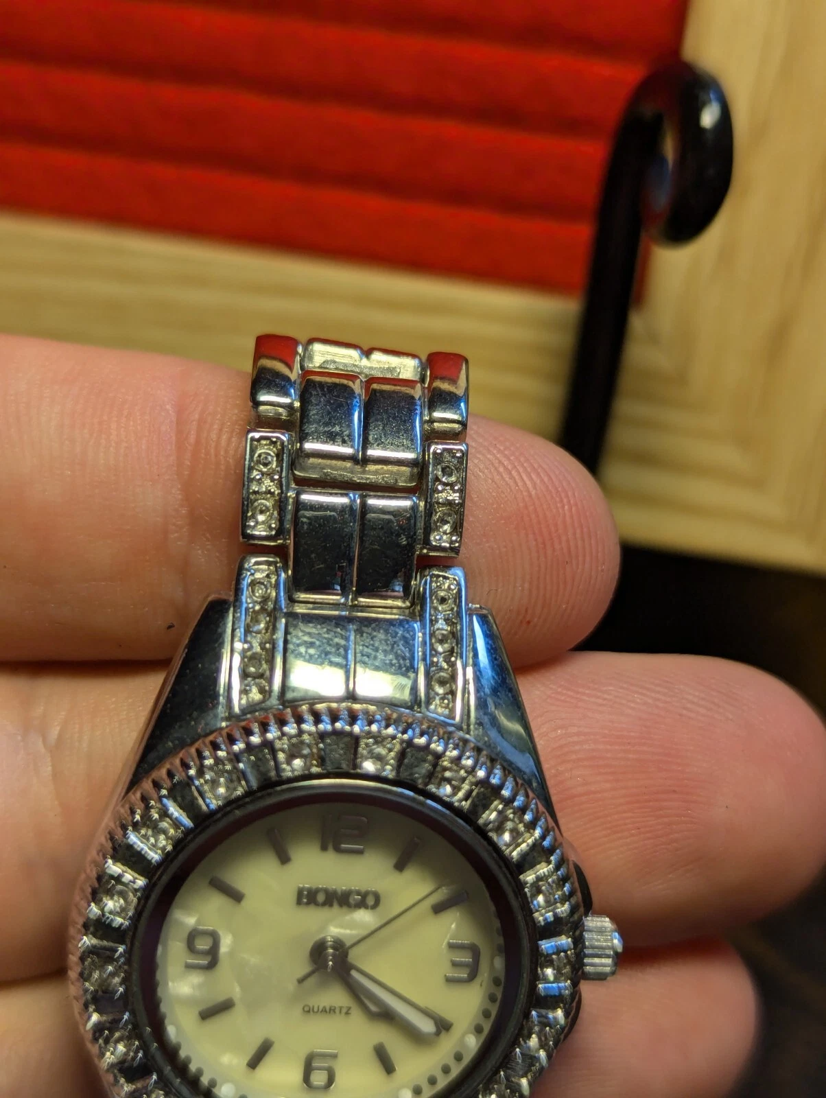 BONGO Watch Ladies BG4323 Silver Band Round Rhinestone Face WORKS/NEW BATTERY