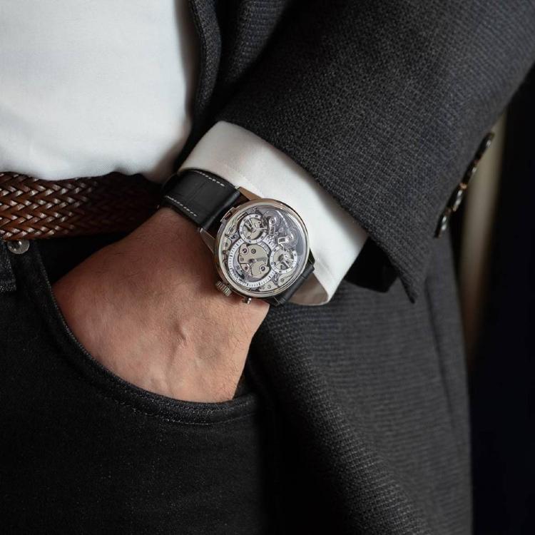 Скелетон. Калибр ARF21 ZG. Запас хода до 80 часов. Серый циферблат. Задняя крышка прозрачная.