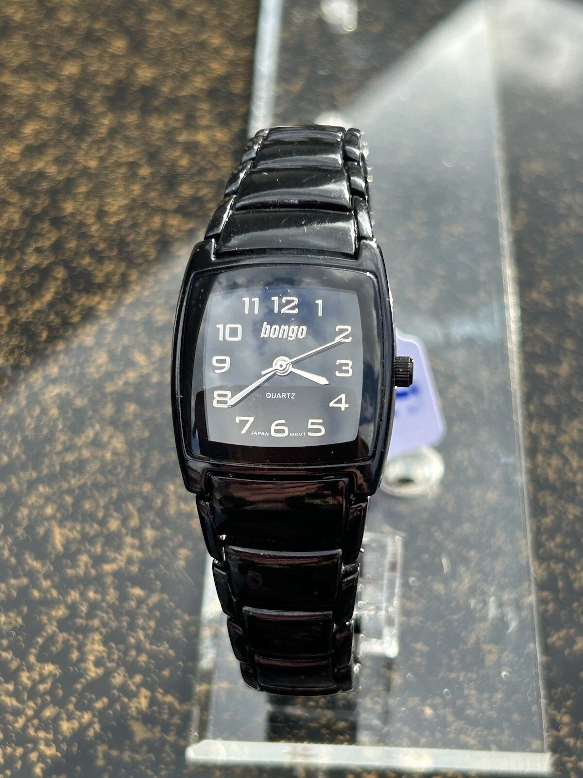 Bongo Brand Black Watch With Gold Hands, Black Band, 25mm, New Battery