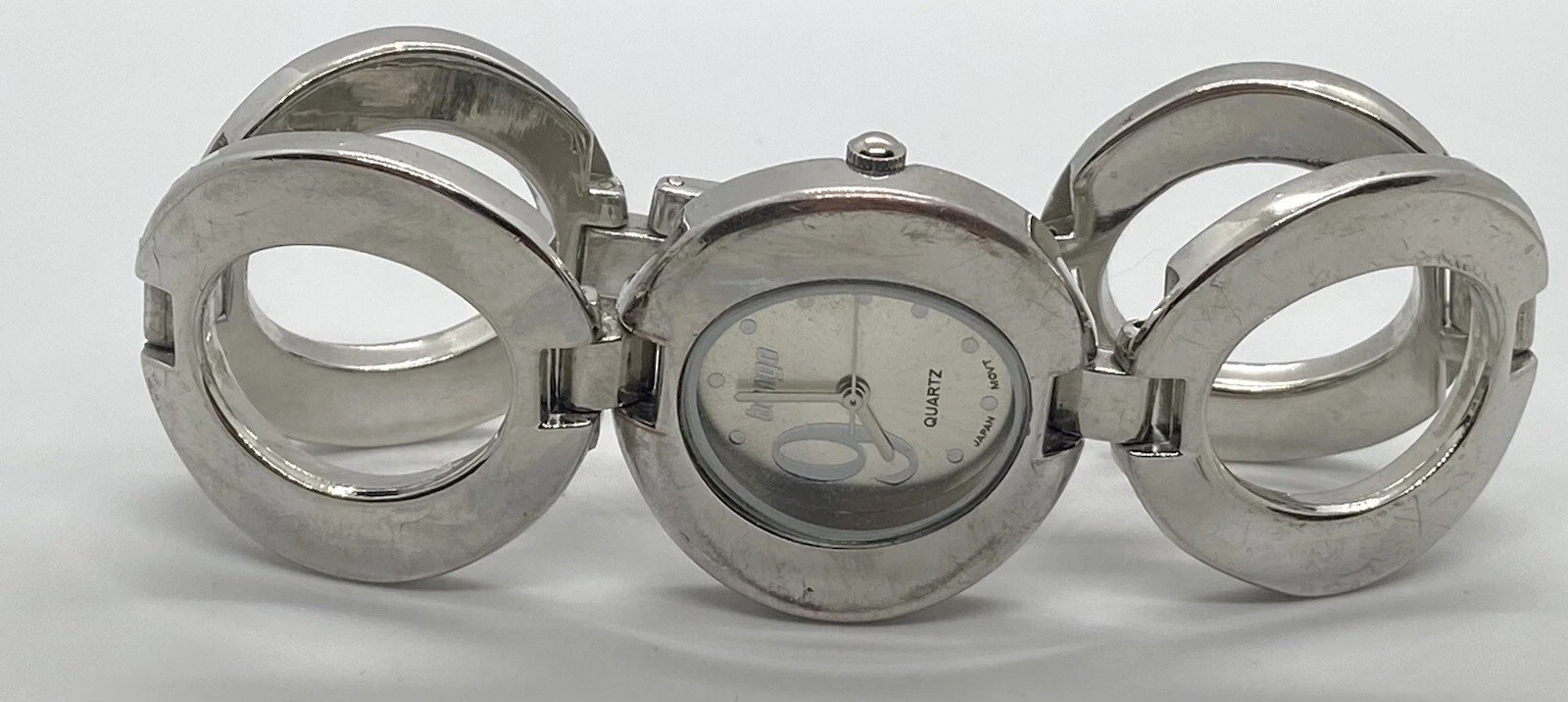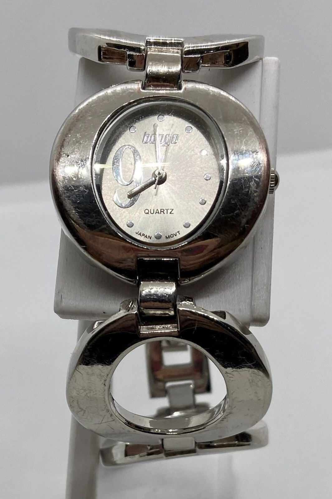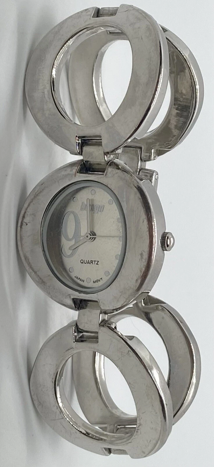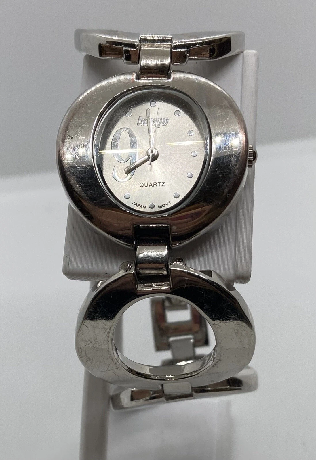 BONGO Watch Ladies/Teens New Battery Wide Silver 7” Link Band Unique NICE!