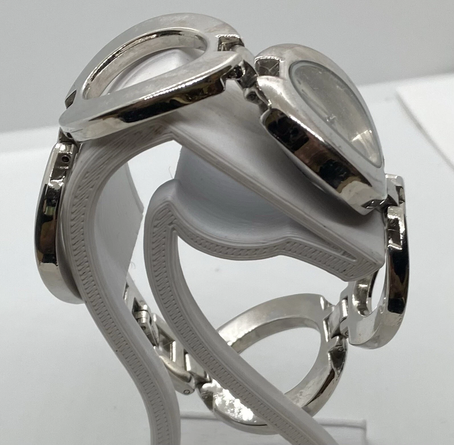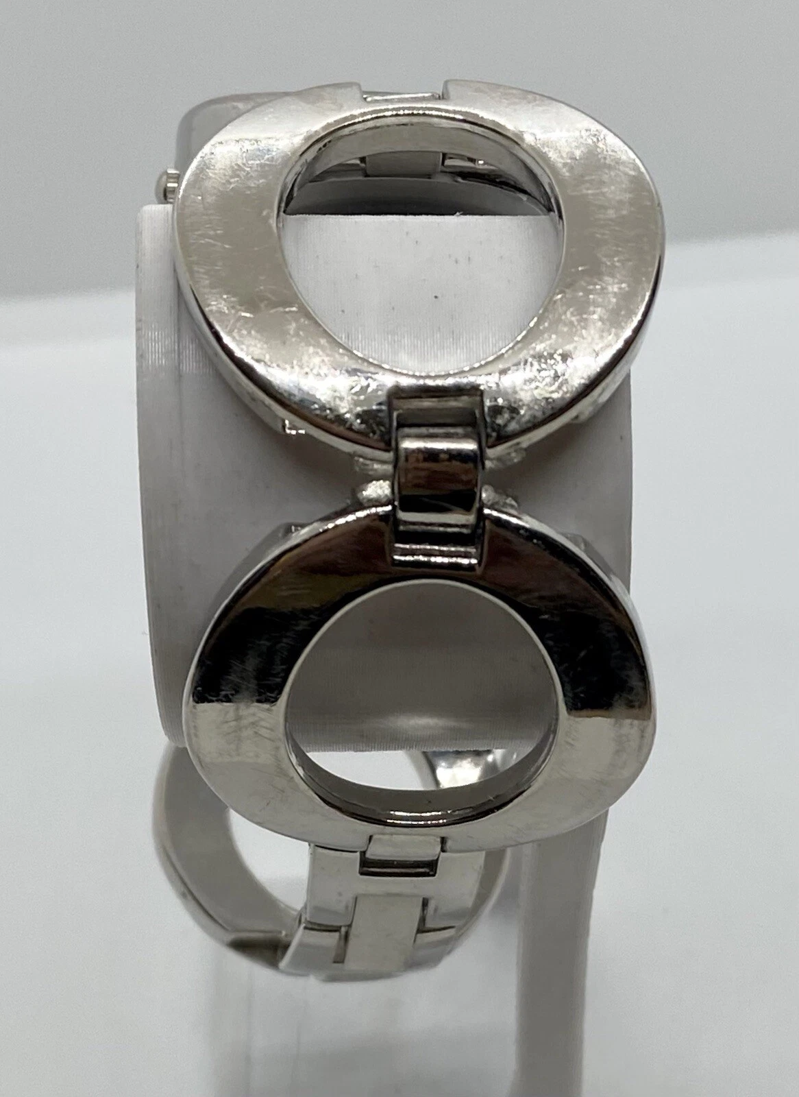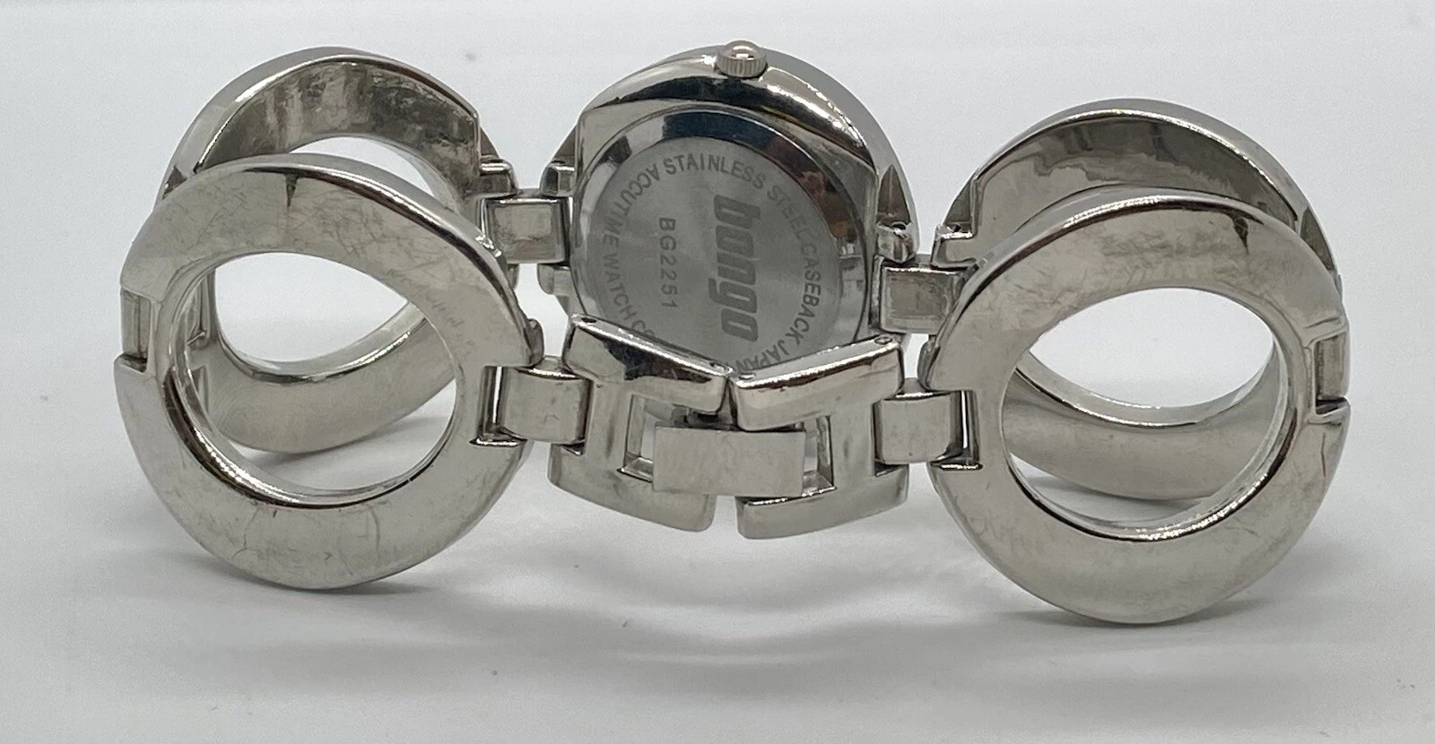 BONGO Watch Ladies/Teens New Battery Wide Silver 7” Link Band Unique NICE!