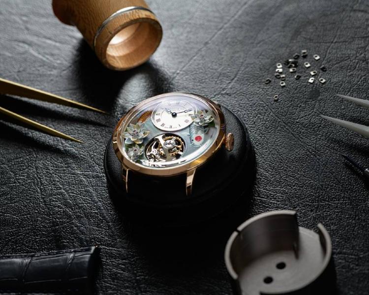 Ограниченная серия (Limited Edition) 1 шт. Парящий турбийон. Дизайнерские часы. Калибр A&S8200. Запас хода до 90 часов. Циферблат украшен ручной росписью и декоративными элементами.