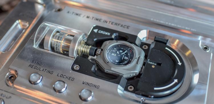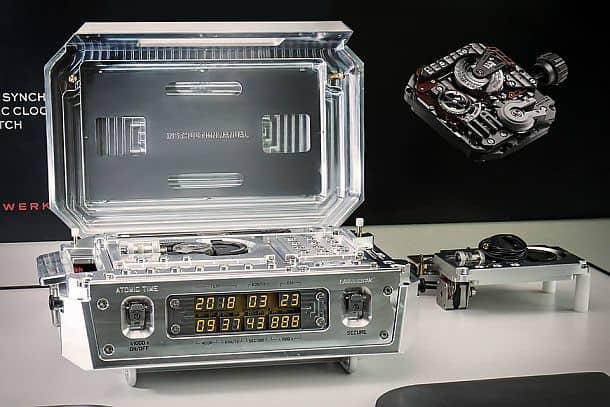 Ограниченная серия (Limited Edition) 3 шт. Калибр UR-EMC. Запас хода до 80 часов. Циферблат серебристый. URWERK AMC - это гибридная временная конструкция, состоящая из двух автономных, но связанных между собой систем. Первая часть - Atomolith - представляет собой фиксированный базовый блок, 35-килограммовые атомные часы с алюминиевым корпусом примерно такого же размера, что и компьютерная башня среднего размера. Вторая часть представляет собой мобильное устройство, чисто механические часы, которые можно носить на запястье или надежно закрепить в базовом блоке. Премия жюри ежегодного часового Гран-При Grand Prix d Horlogerie de Geneve 2019 в номинации Лучшие часы в категории Выдающаяся механика.
