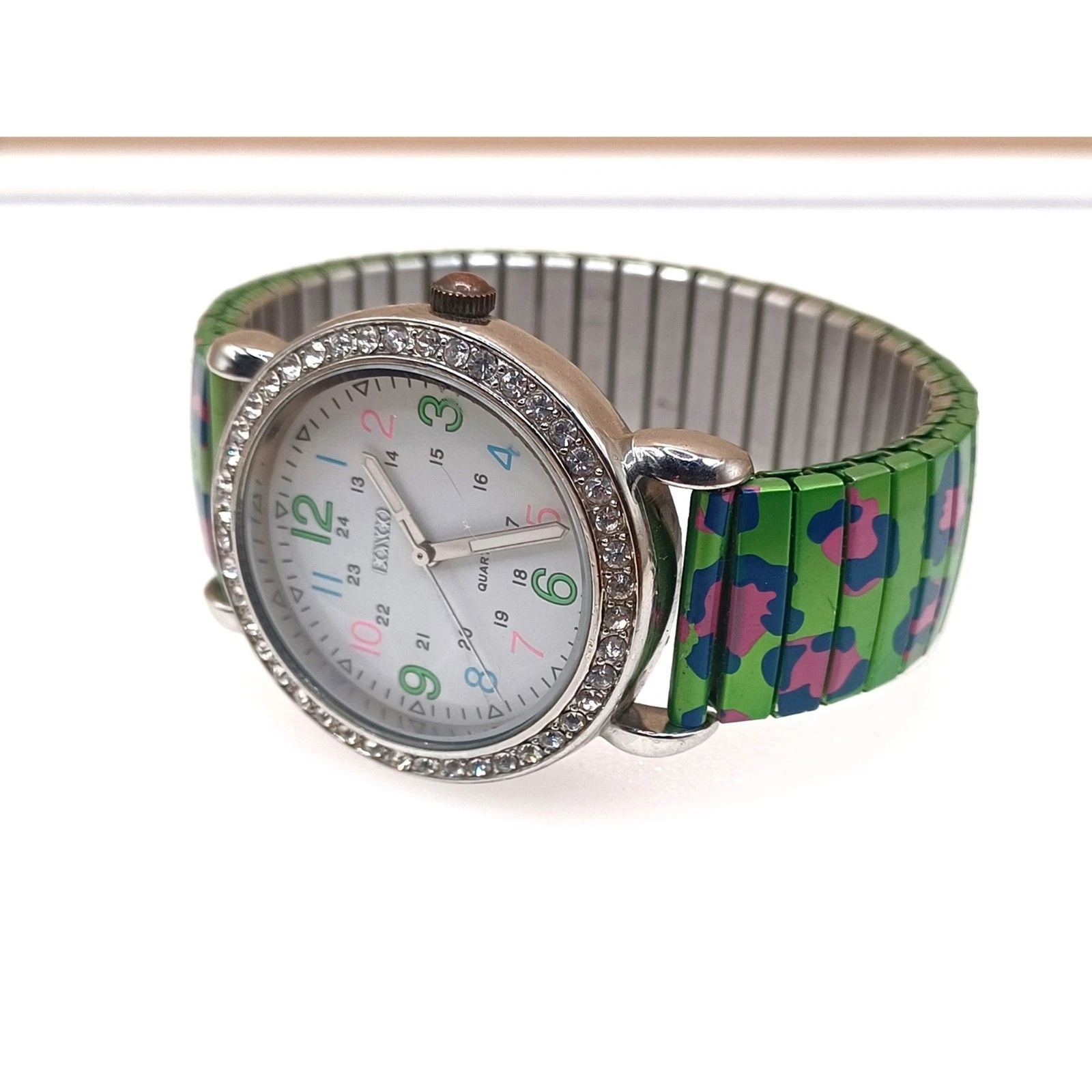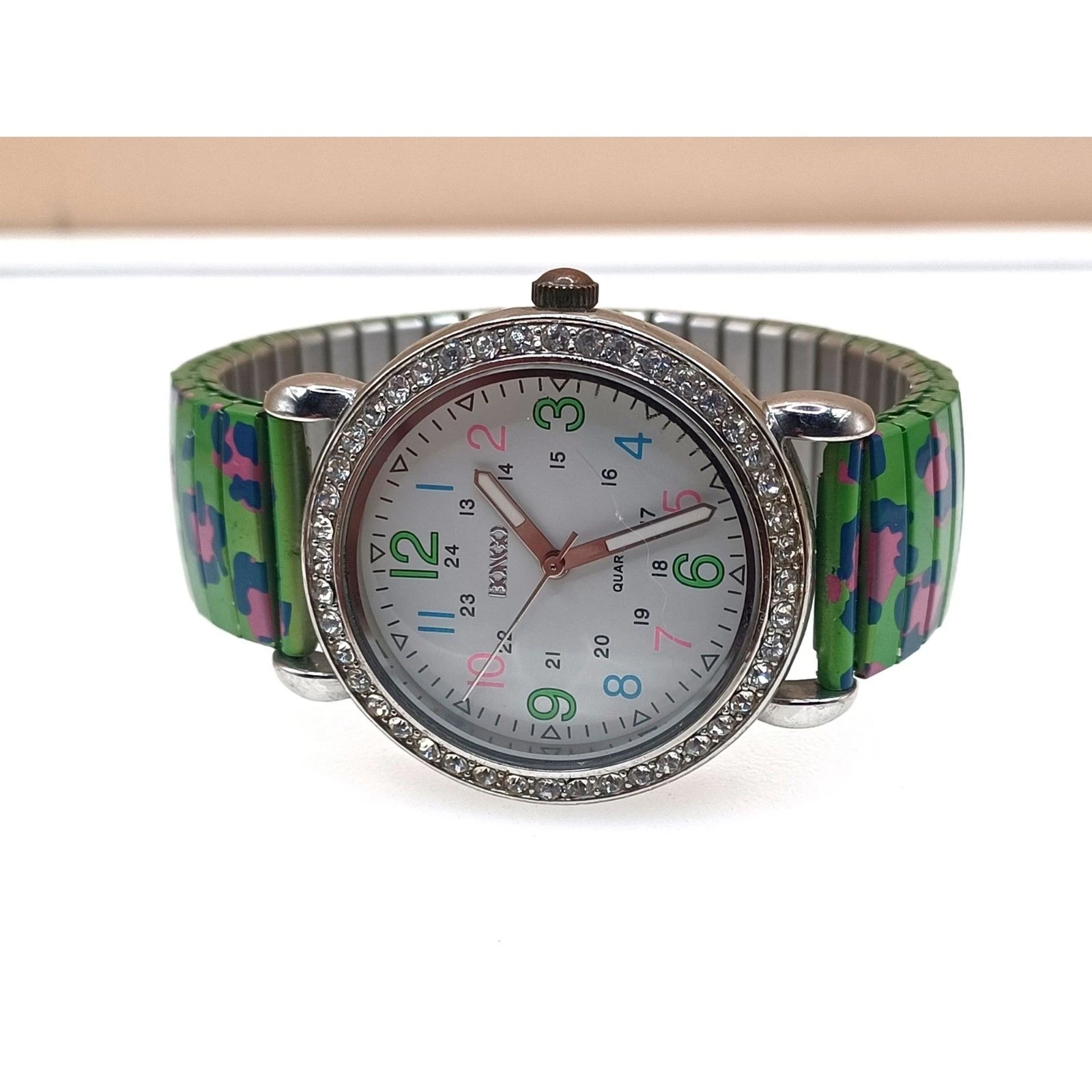 BONGO BG9606 Green and Pink, Rhinestone Women's Watch by Accutime Fully Working