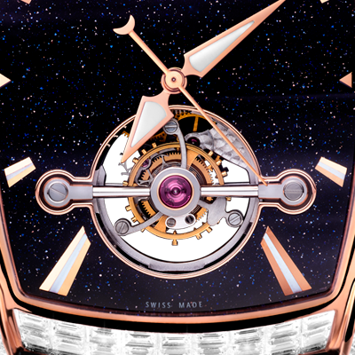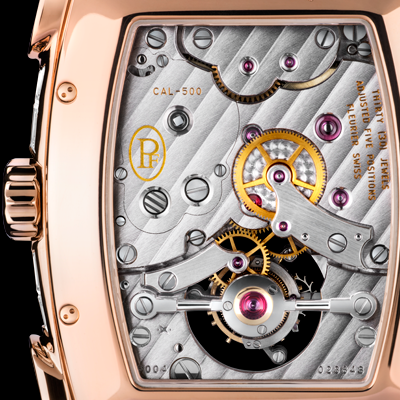 215 багетных бриллиантов 11,8 карат. Турбийон. Индикатор запаса хода. Калибр PF500. Запас хода до 172 часов. Циферблат синий. Задняя крышка прозрачная. Номинант ежегодного часового Гран-При Grand Prix d Horlogerie de Geneve 2018 в номинации Женские часы с усложнениями.