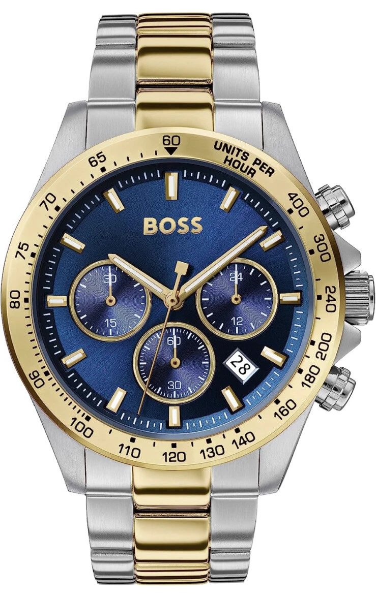 BOSS MENS WATCH STAINLESS STEEL SILVER GOLD BRACELET & BLUE DIAL 1513767