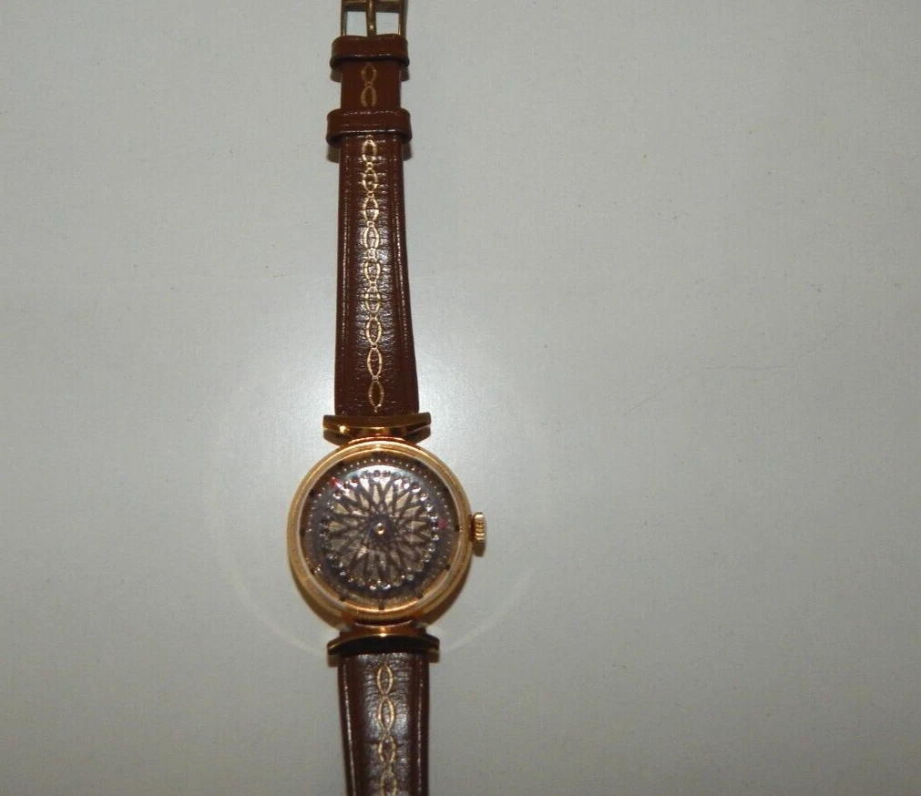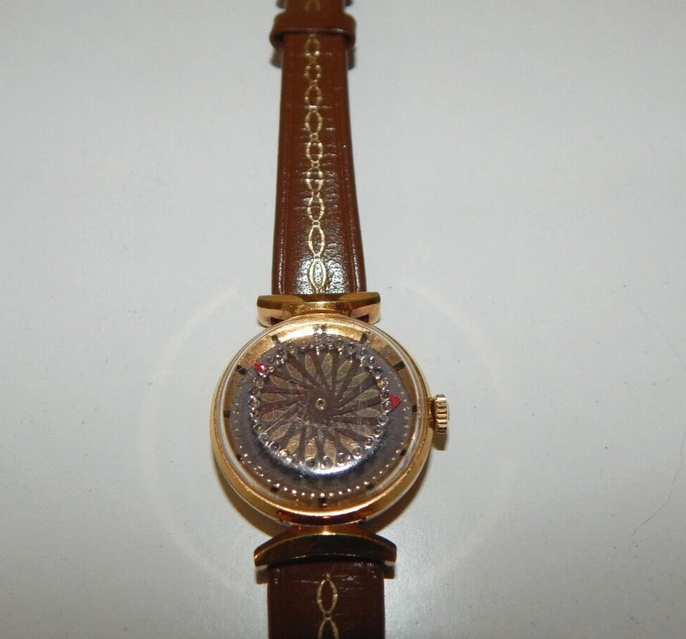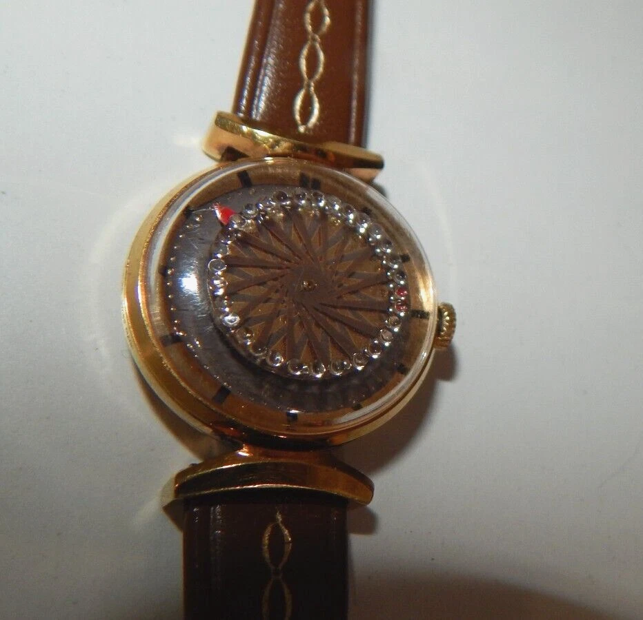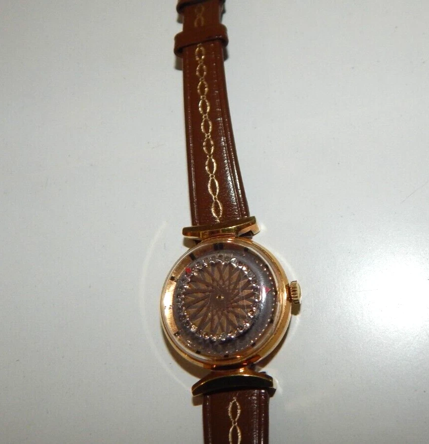 ERNST BOREL Cocktail Kaleidoscope Crystal Dial Manual 17 Jewel Swiss Watch Brown