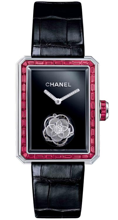 Ограниченная серия (limited edition) 20 шт. Багетные рубины. Турбийон. Запас хода до 40 часов. Циферблат чёрный. Задняя крышка прозрачная.