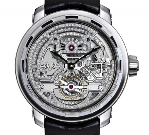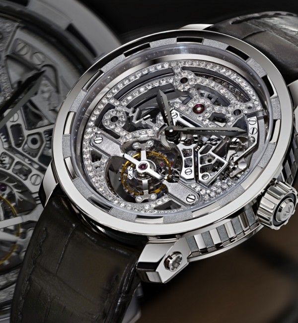 Турбийон. Калибр DW8028s. Скелетон. 215 бриллантов 0,78 карата. Запас хода до 72 часов. Сапфировое стекло. Прозрачная задняя крышка.
