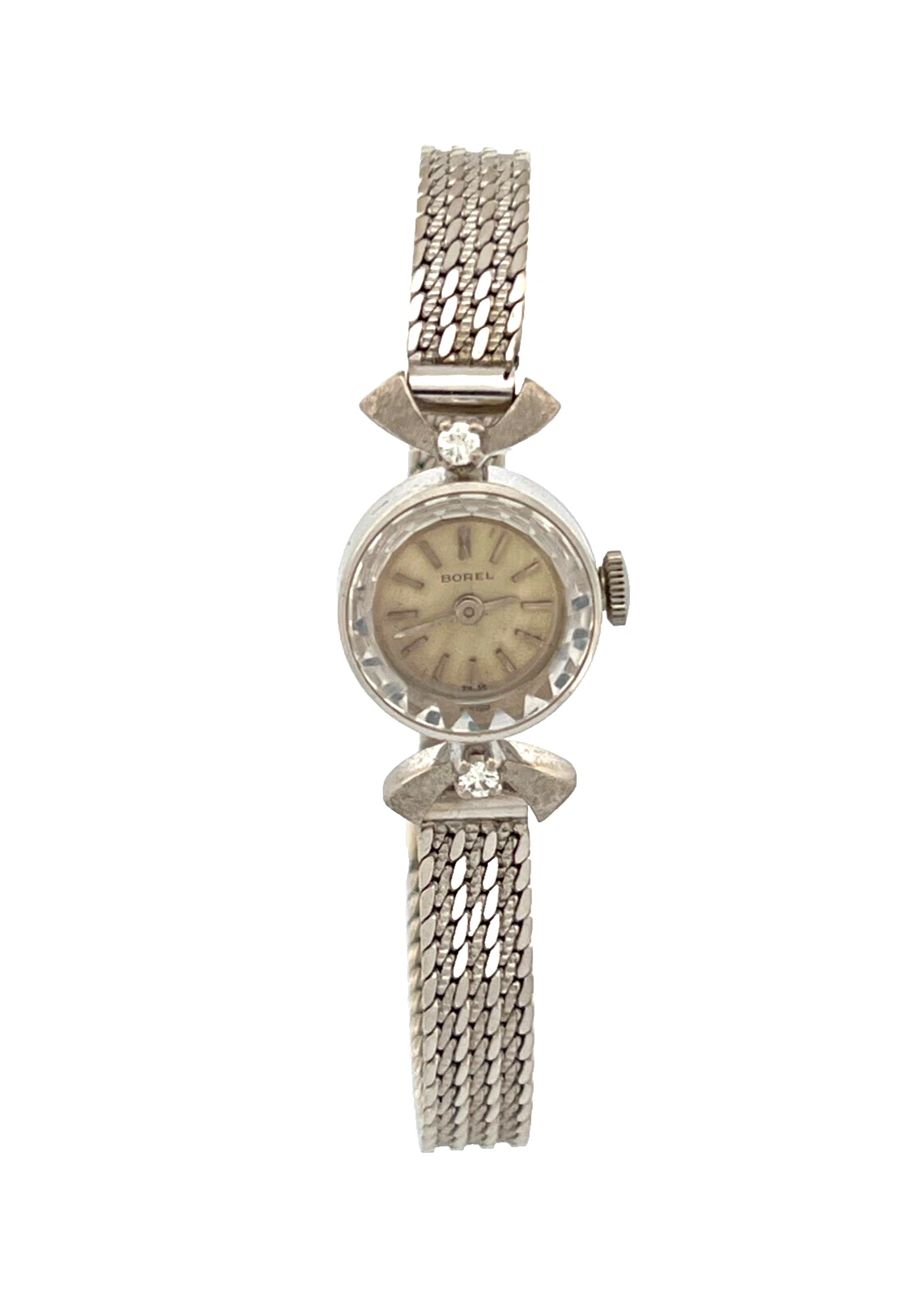 Vintage 18K White Gold Diamond Borel Ladies Swiss Manual Wind Watch 20.5grams