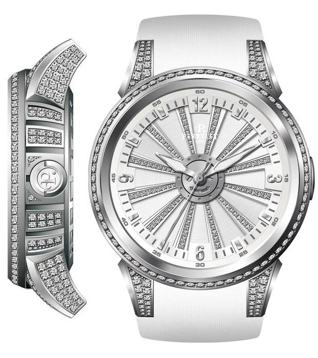 358 бриллиантов. Запас хода до 40 часов. Задняя крышка прозрачная.