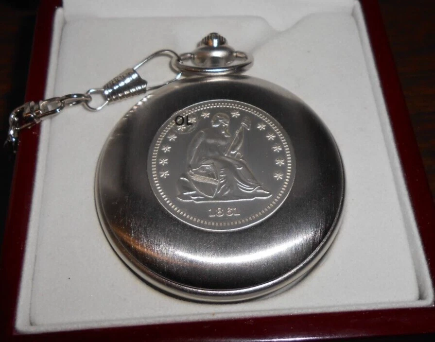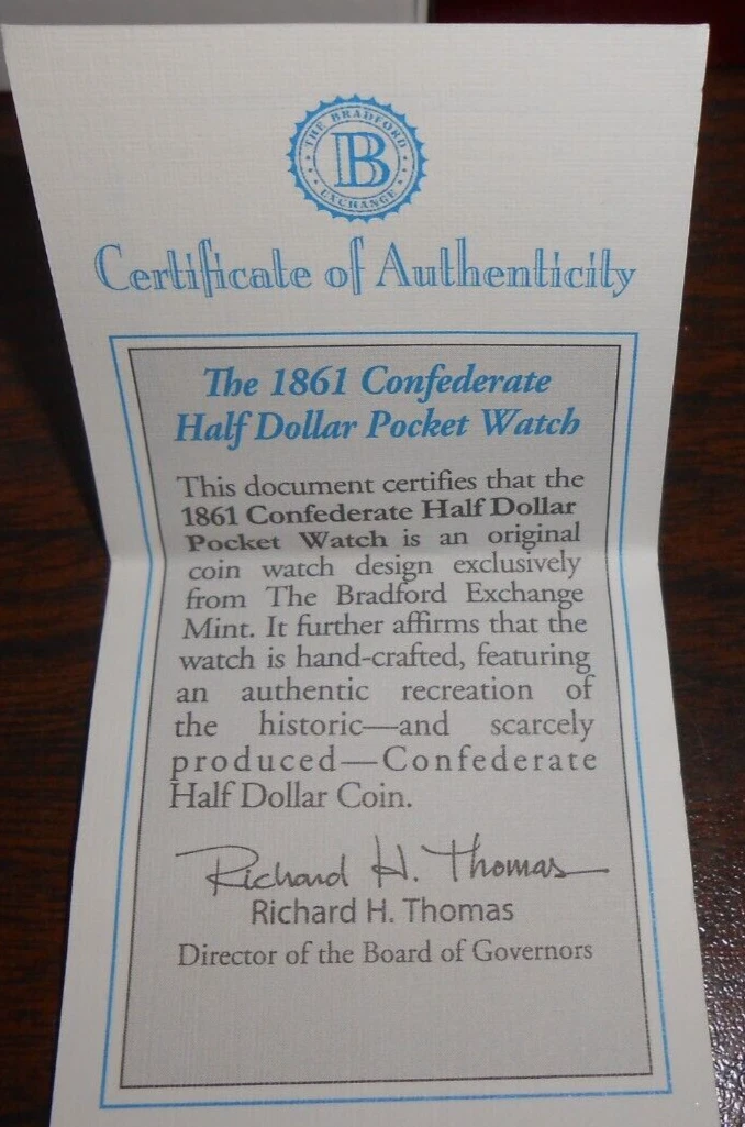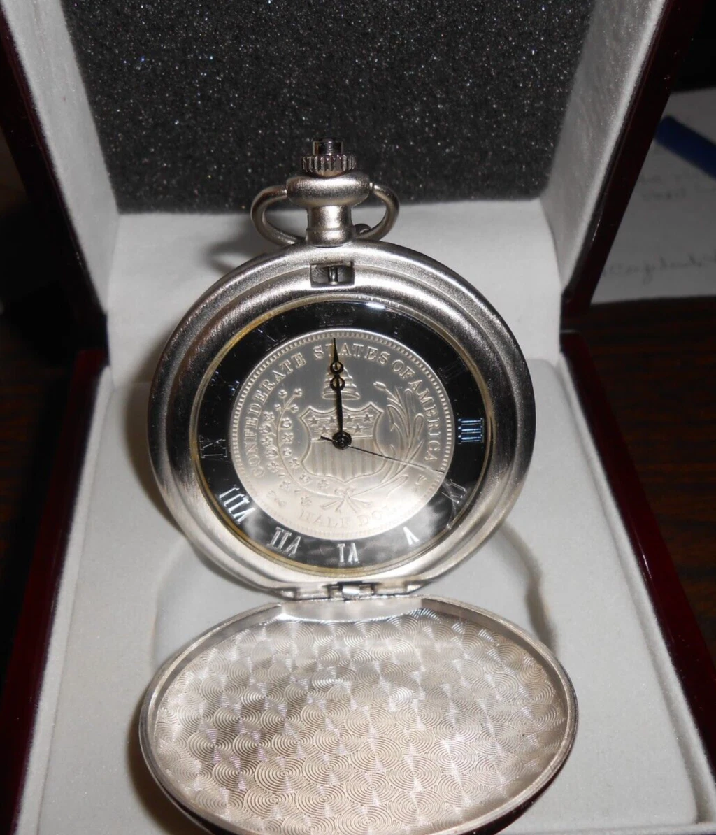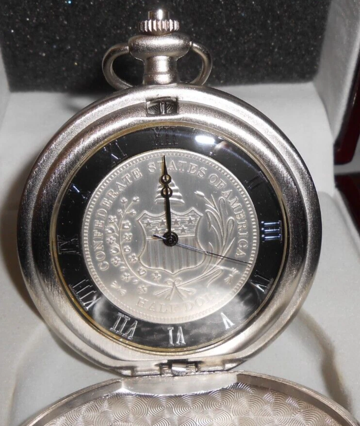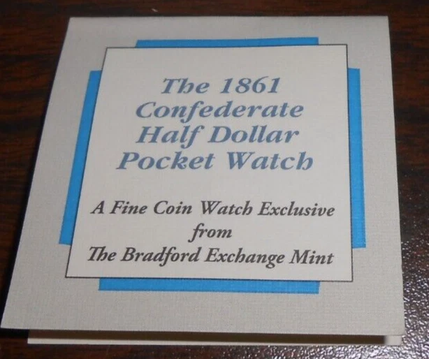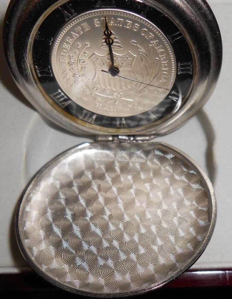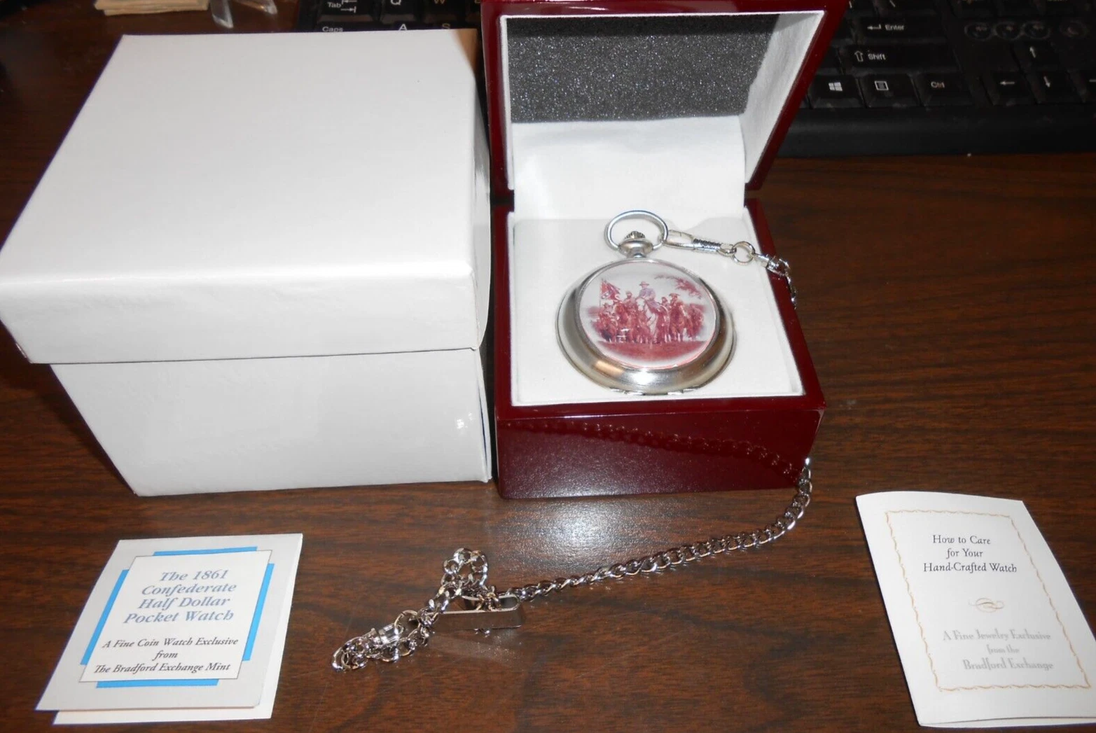 1861 CONFEDERATE SEATED HALF DOLLAR POCKET WATCH BRADFORD EXCHANGE - PRE-OWNED