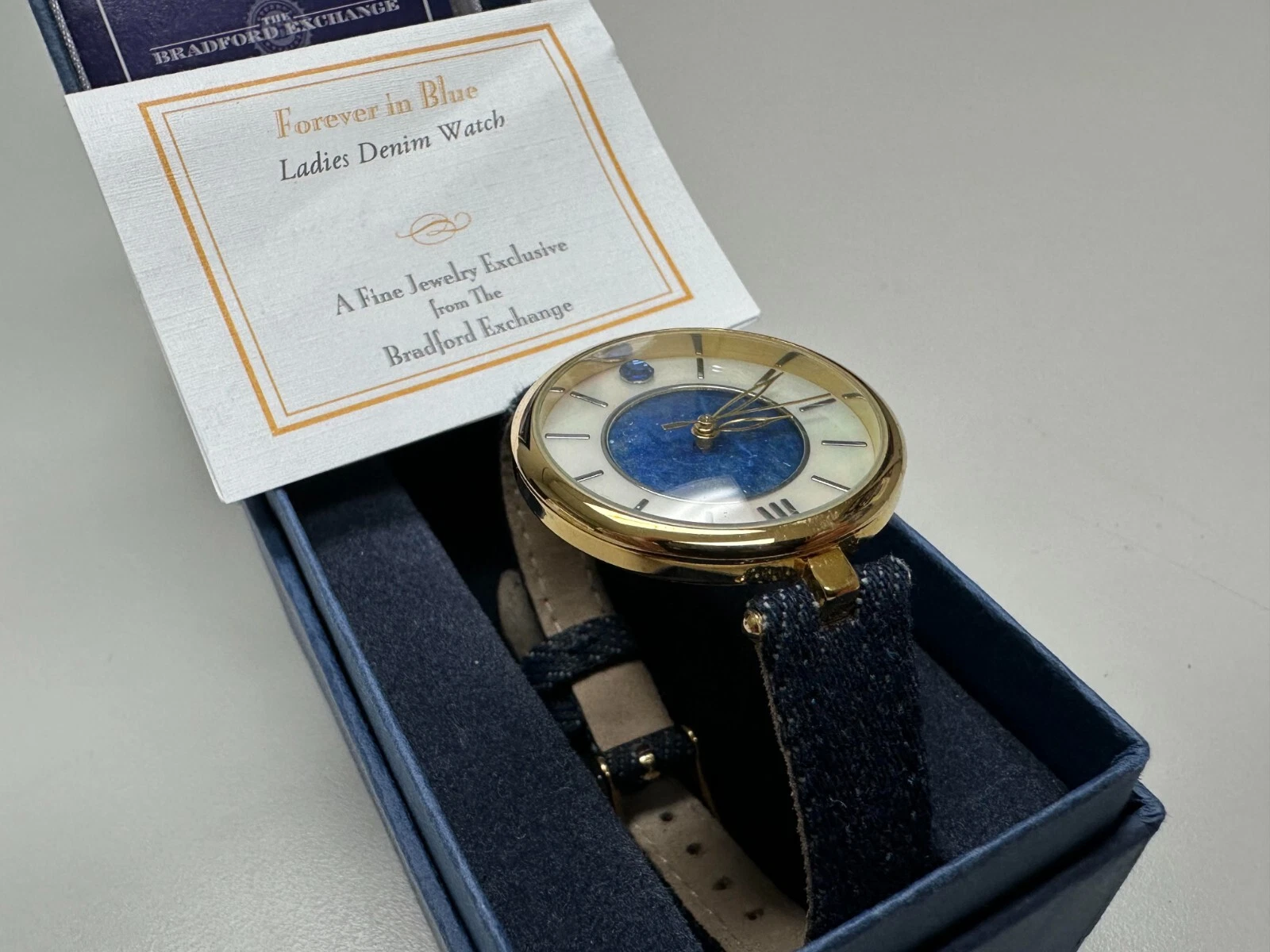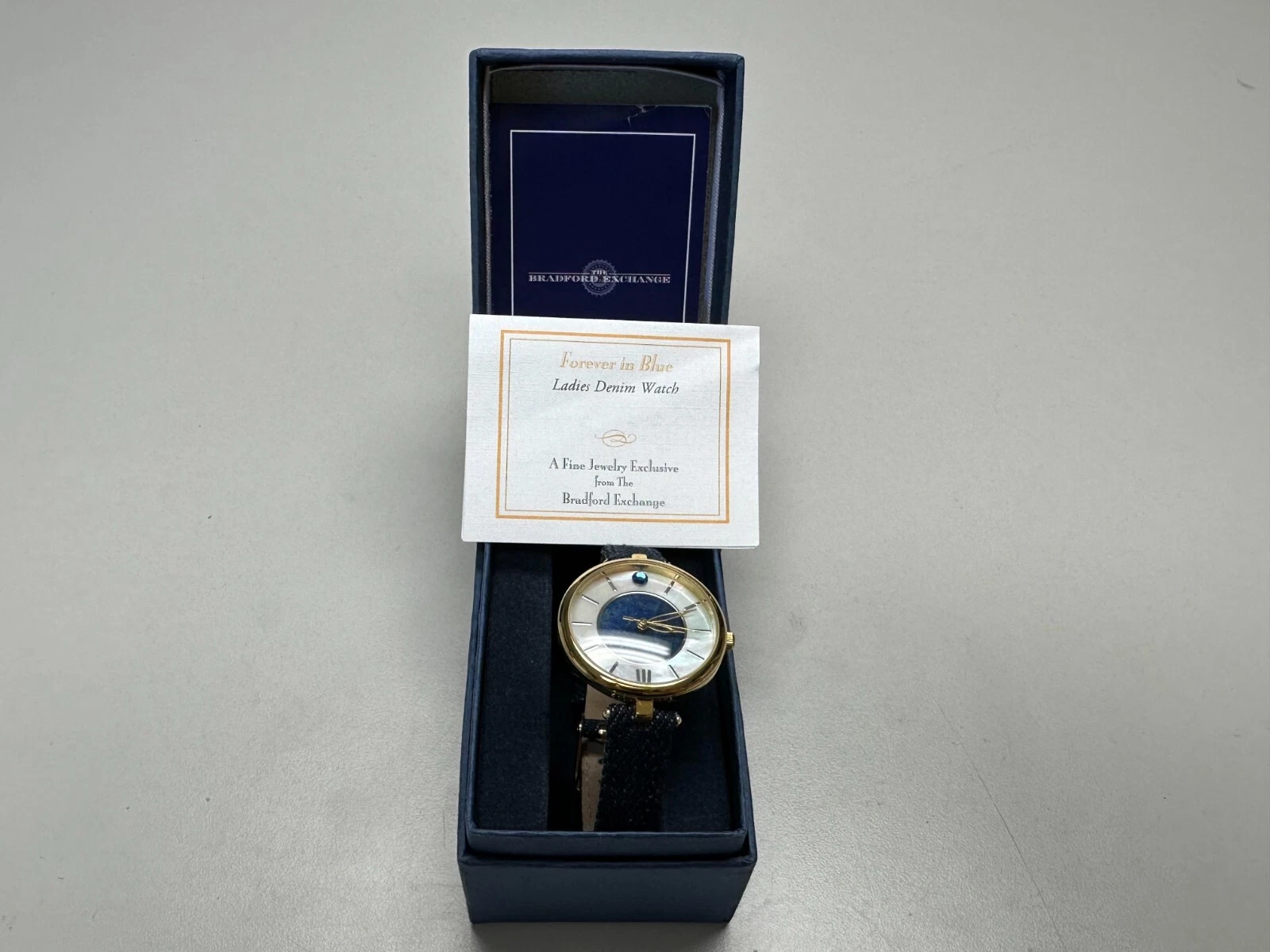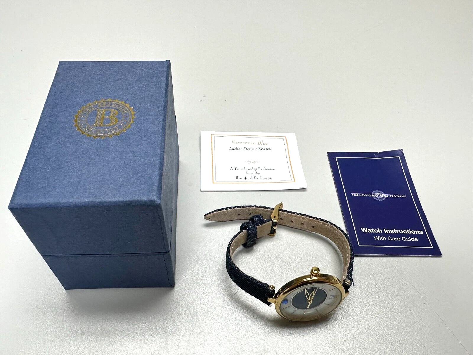 RARE GENUINE The Bradford Exchange Forever In Blue Denim Ladies Watch IN BOX