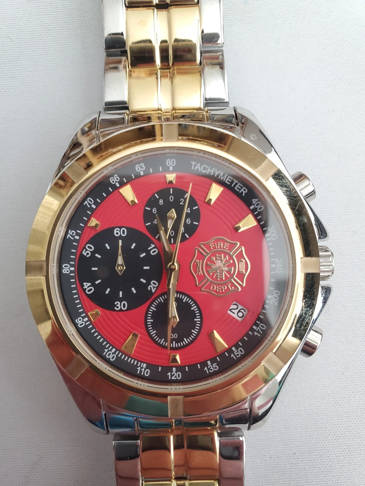 For My Firefighter Men's Chronograph Watch Red Dial, 41MM, NEW BATTERY