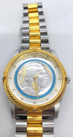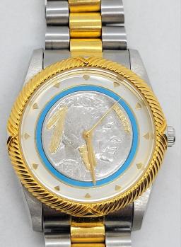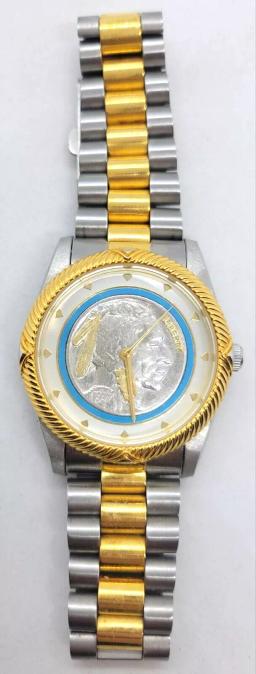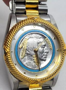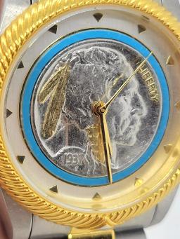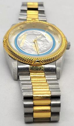 Bradford Exchange Watch 1937 Indian Head Buffalo Nickel 2-Tone Band BGE - READ