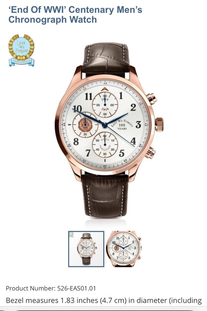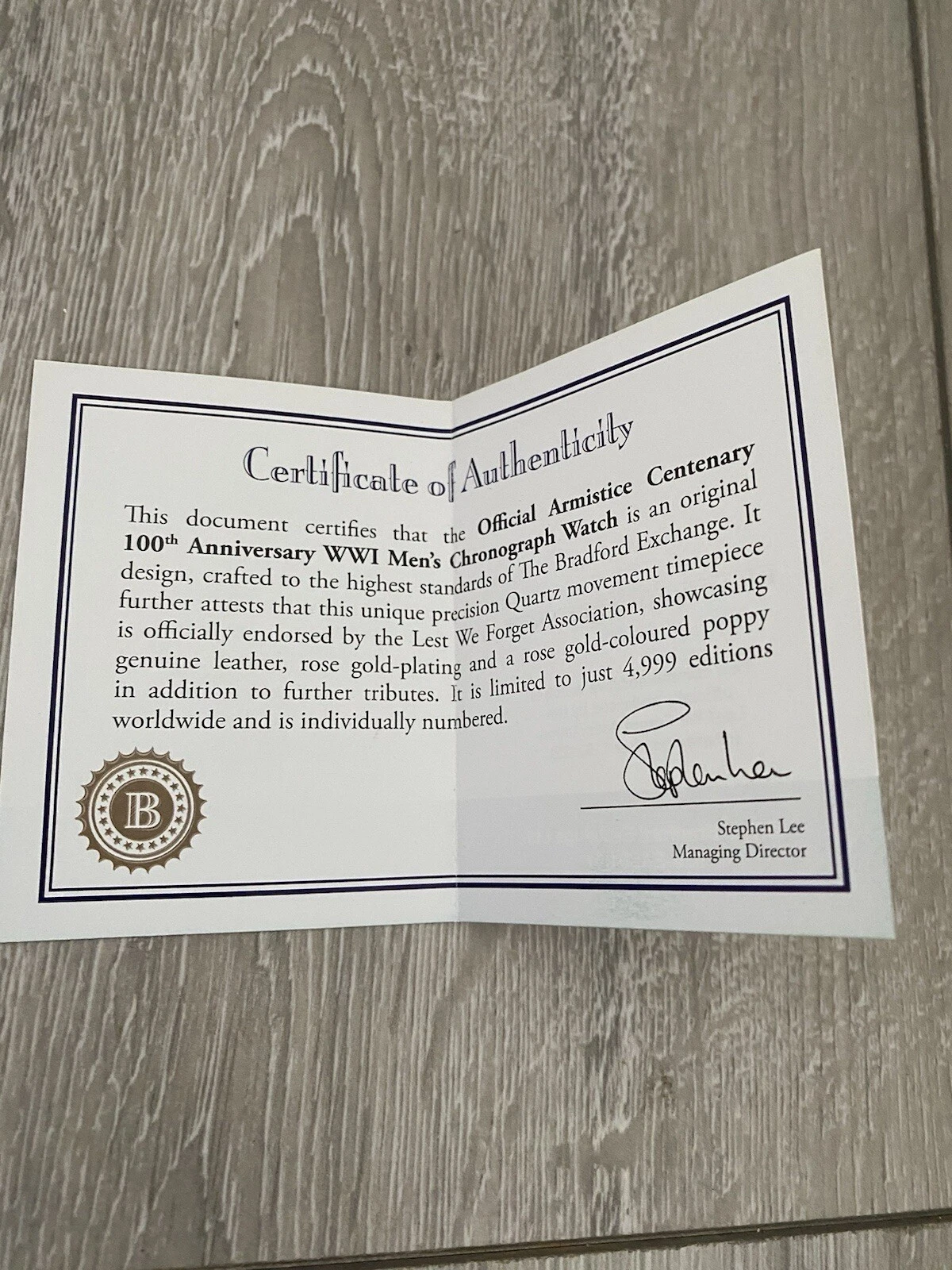 The Bradford Exchange ‘End Of WWI’ Centenary Men’s Chronograph Watch BNIB