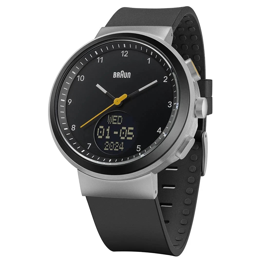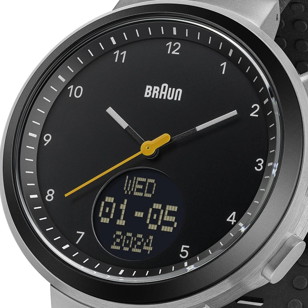 BN0299 Braun Mens Gents Step Counter Watch Black Dial Black Silicone Strap New