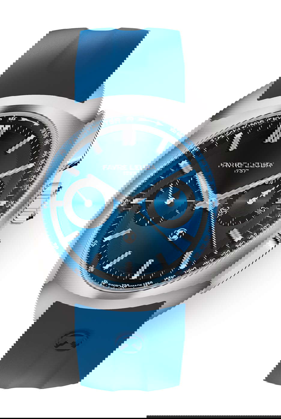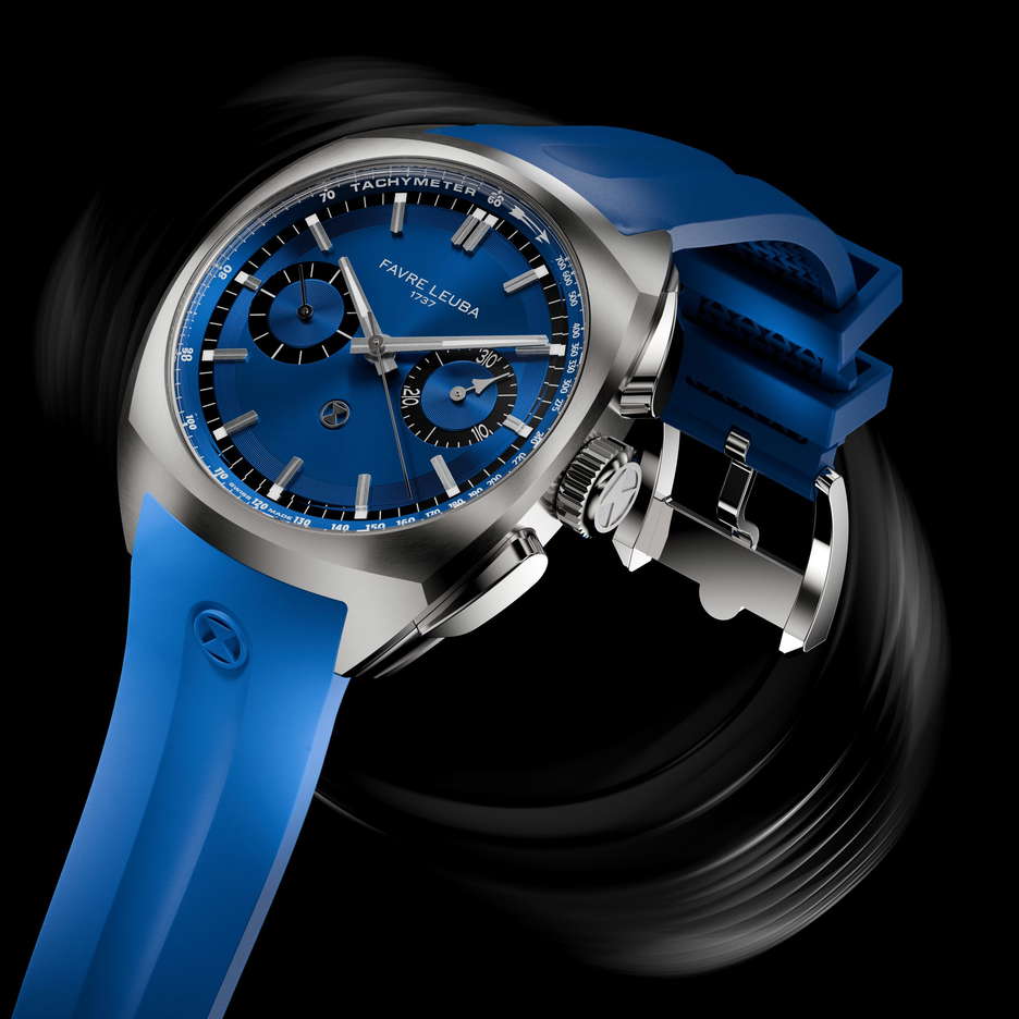 The Favre Leuba Chief Chronograph easily blends vintage charm with modern sport-chic refinement. Rooted in the brand’s 1970s design language, it retains the signature cushion-shaped case, now subtly refined with grooved flanks, streamlined lugs, and an ovoid profile that enhances both compactness and wearability. Its sunburst dial, available in blue, ice blue, and black, undergoes over 100 production steps to achieve remarkable depth. Raised bi-compax sub-dials at 9 and 3 o’clock enhance contrast, while a tachymeter scale along the inner flange reinforces its sporting credentials. Rhodium-plated Super-LumiNova®-coated hands and indices ensure optimal legibility, while the 3D Favre Leuba hourglass at 6 o’clock adds a signature touch of refinement. Housed in a 41mm 316L stainless steel case with brushed and satin finishes, the Chief Chronograph features a sapphire crystal case back, revealing the La Joux-Perret L113 column-wheel chronograph movement, renowned for its smooth actuation and 60-hour power reserve. The intricate movement finishing—Côtes de Genève striping, blued screws, and polished steel components—reflects Favre Leuba’s commitment to fine watchmaking. Completing the package, an integrated steel bracelet with H-shaped links and a deployant clasp, with a rubber strap option available for a sportier edge. In an era where many heritage reissues err on the side of nostalgia, Favre Leuba takes a more considered approach, breathing new life into a classic without losing its essence. The Chief Chronograph is neither a mere throwback nor a radical reinvention—it is an evolution, a watch that respects its past while confidently asserting itself in the present.