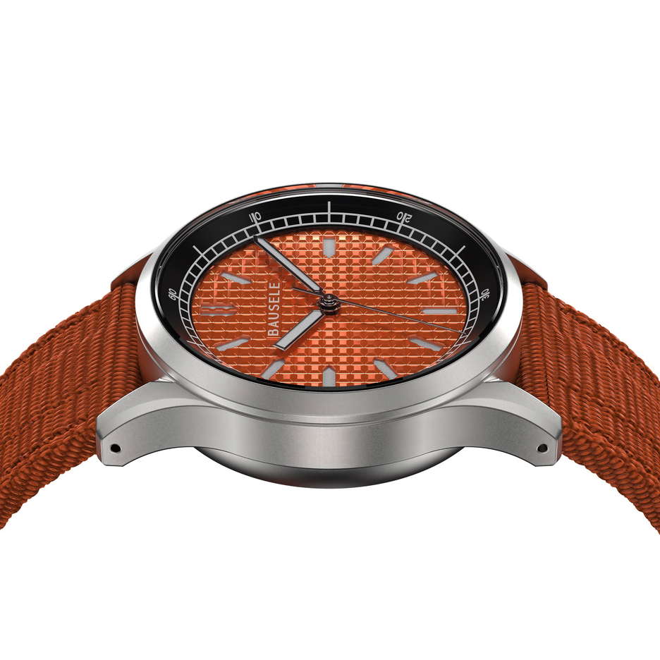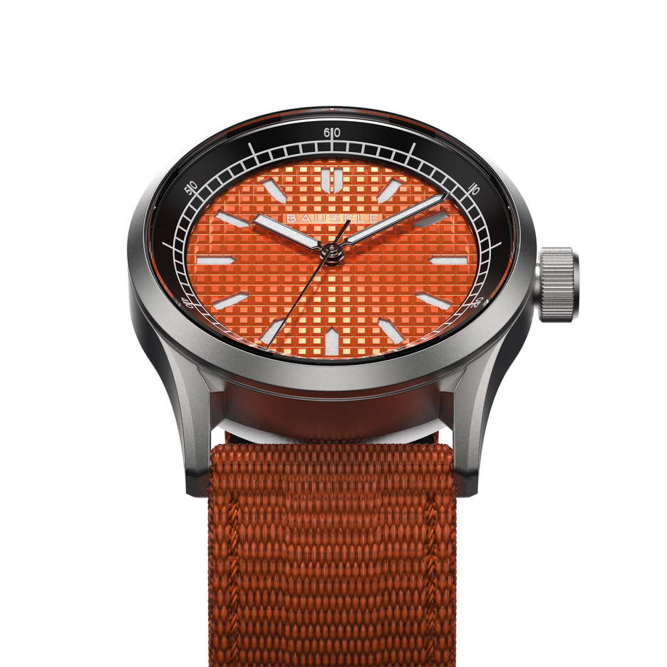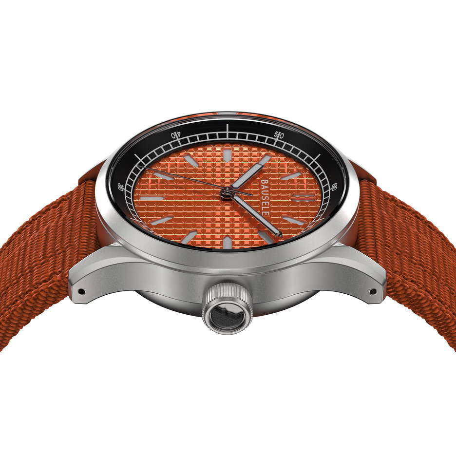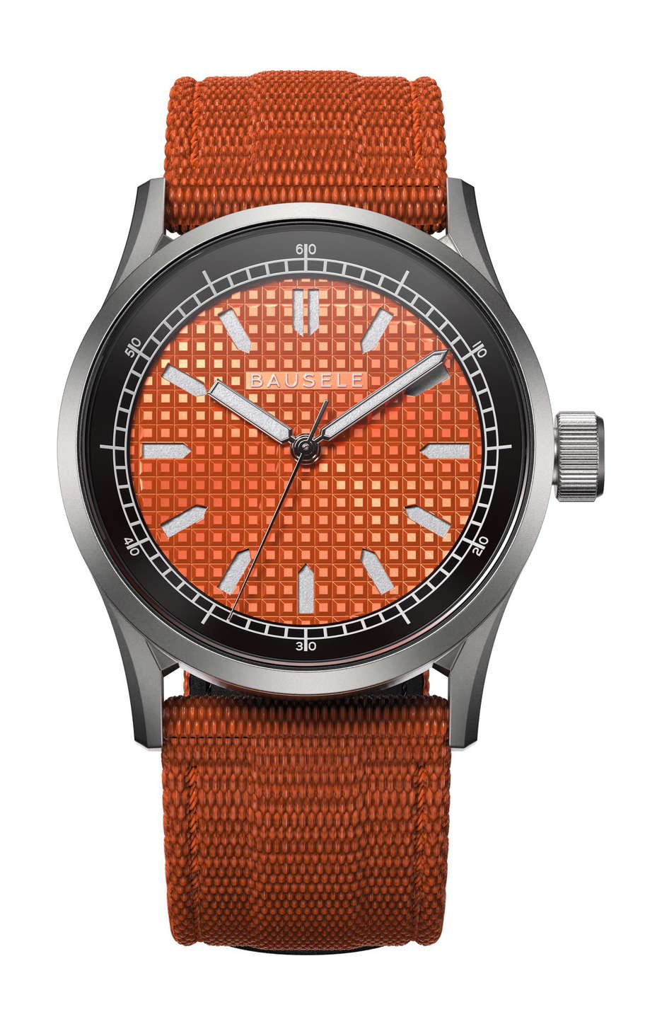 The Bausele Field Good Uluru Red Watch is a limited edition watch designed to capture the vibrant spirit and stunning colors of Australia’s famous Uluru/Ayers Rock. The watch portrays the deep and rich orange tones of this cherished Australian landmark and its grandeur. It’s more than just a timekeeper; it’s a portal to adventure. This watch has a “Petite Tapisserie” pattern that creates a mesmerizing depth and play of light with every movement of your wrist. Its C3 Luminova®-coated hands and numerals ensure visibility in low-light conditions. Made from 316L sandblasted marine-grade stainless steel, the 38mm case is robust and water-resistant up to 100 meters, suitable for everyday wear and recreational water activities. It is powered by the reliable Seiko NH38A movement with a 41-hour power reserve. Adding a personal touch, the case back is laser-engraved with “Limited Edition” and “From Sydney with Love,” highlighting Bausele’s proud Australian heritage. And the crown, located at the 3 o’clock position, features a unique filling of black sand from Kiama’s Black Beach in New South Wales, Australia. The Bausele Field Good Uluru Red is a perfect blend of rugged elegance and sophisticated style, designed for both everyday explorers and watch lovers alike.